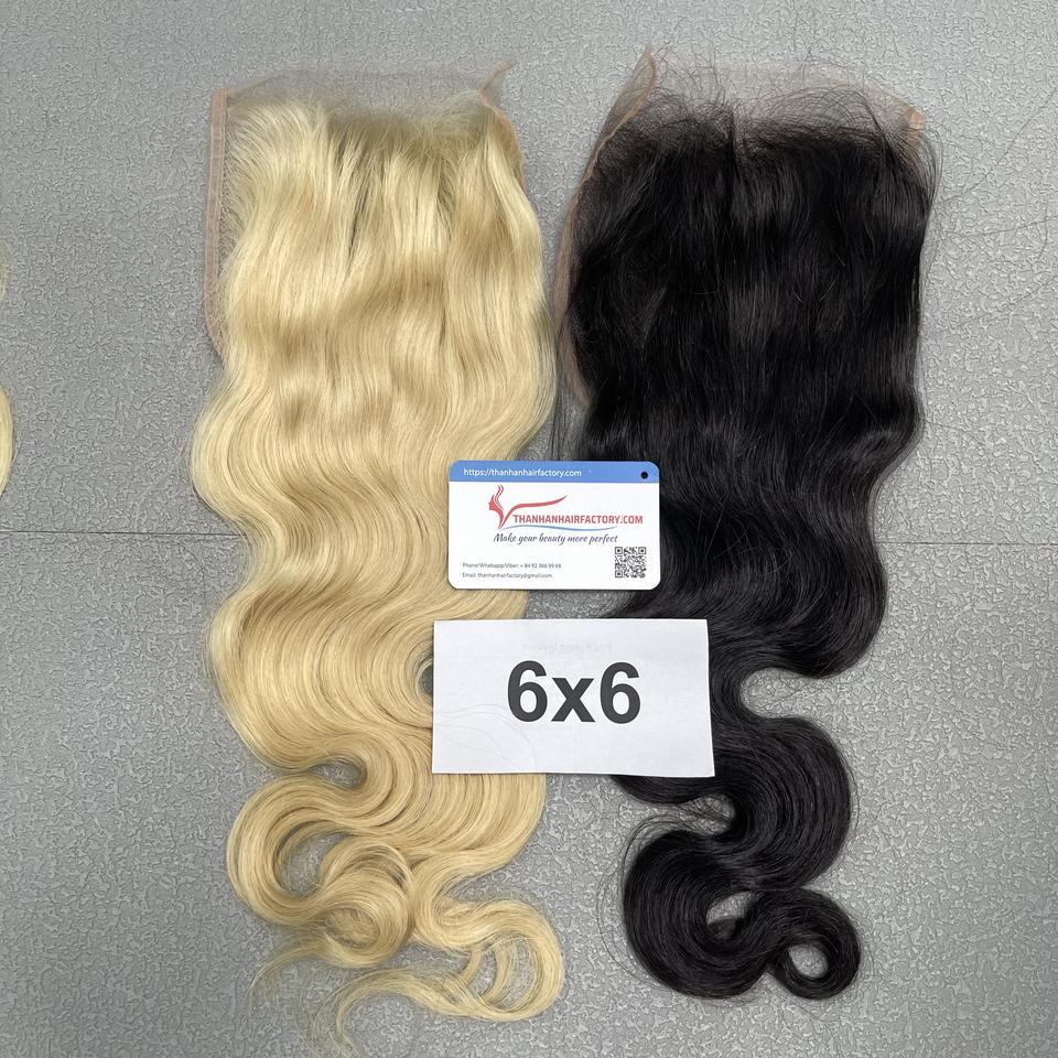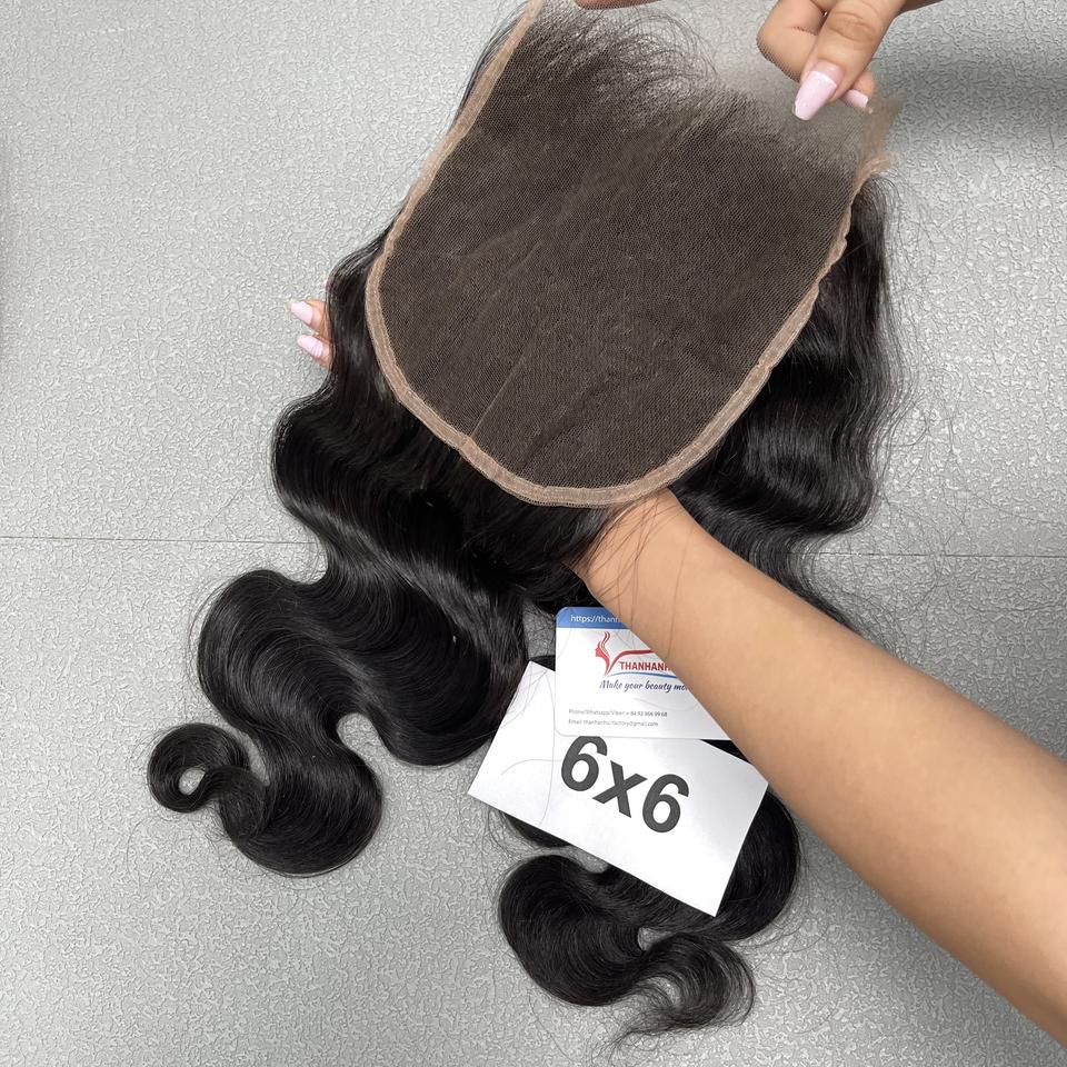 Wholesale Thanh Virgin Vietnamese Human Steam Body Wave Lace Closure Cuticle Aligned Free Part Remy Natural Look Double Drawn
