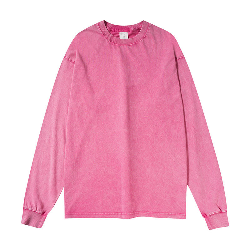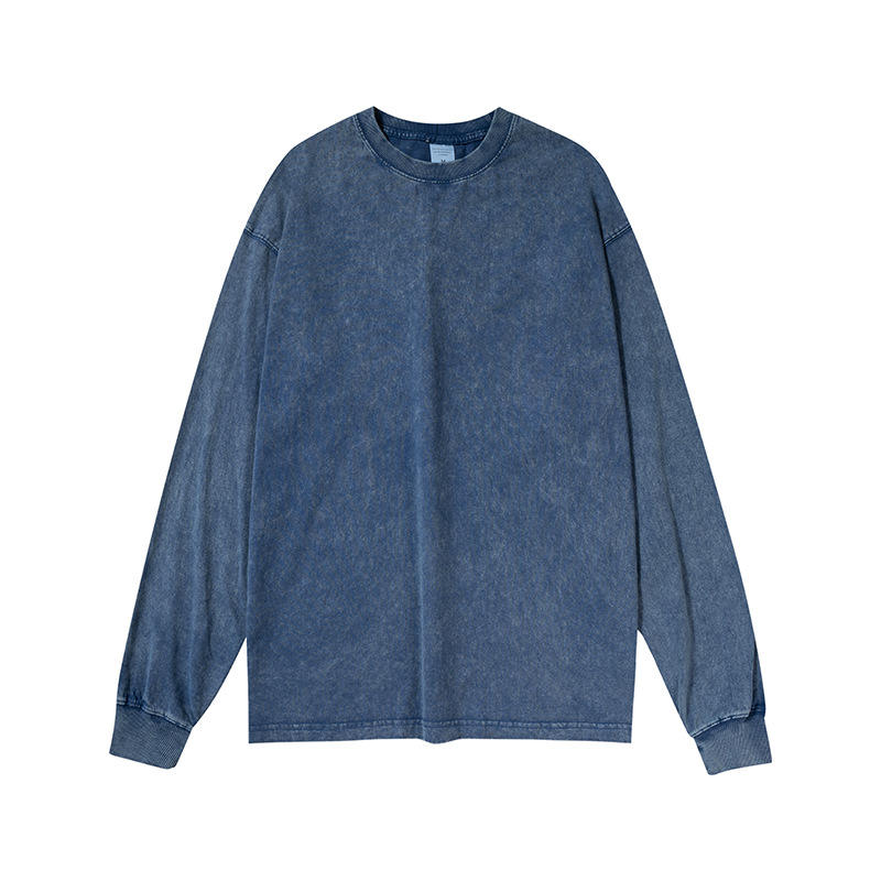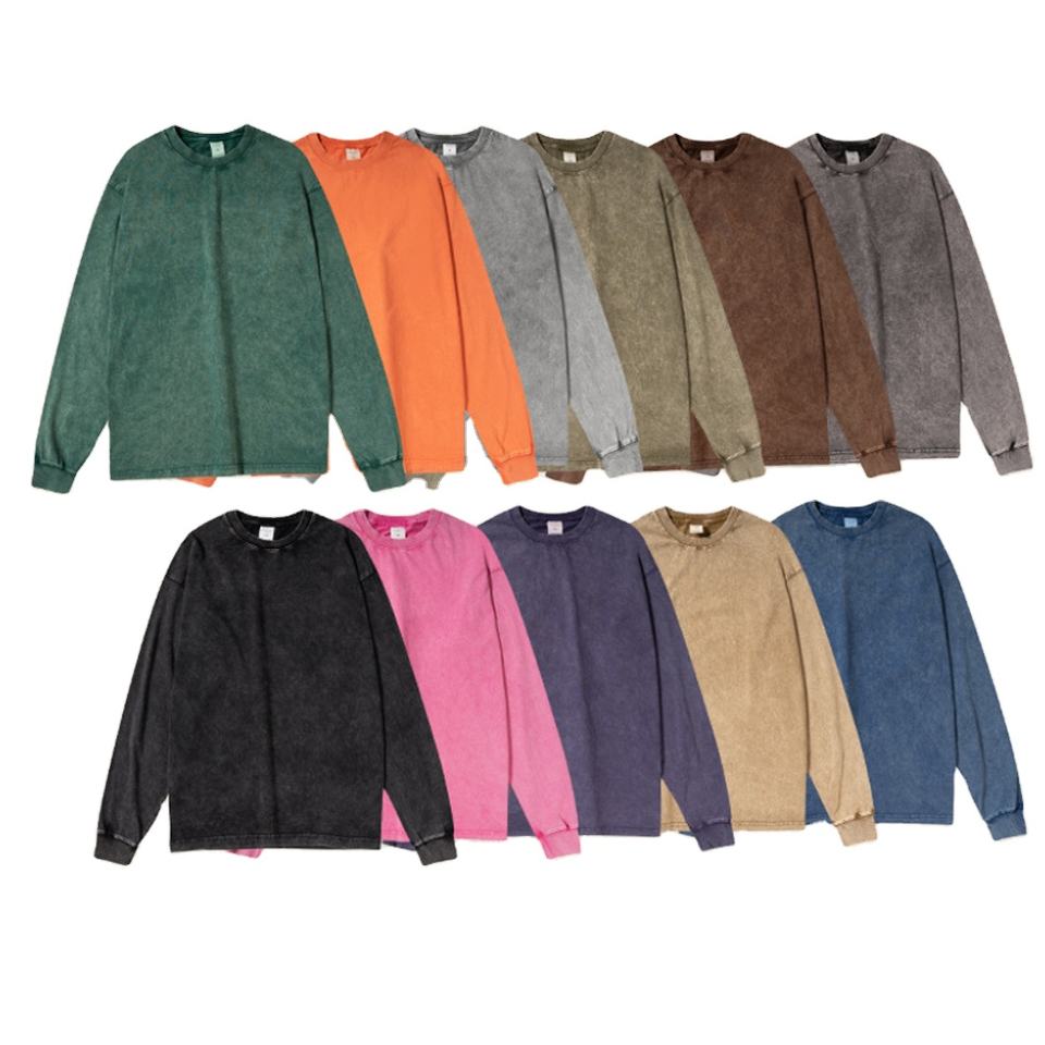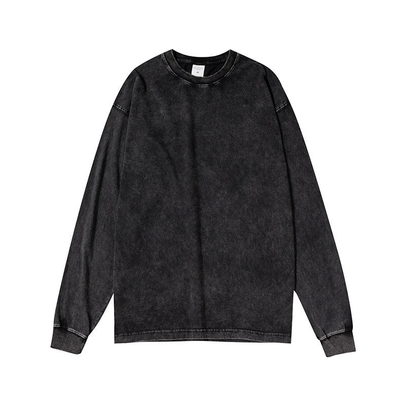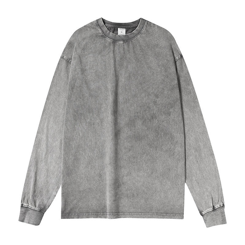 เสื้อยืดแขนยาวผู้ชาย W0516 ผ้าคอตตอนหนานุ่ม สไตล์คัสตอม คอกลม ล้างสีแบบ Acid Wash ทรงโอเวอร์ไซส์ ขายส่ง