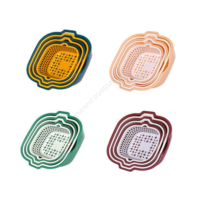 ชุดอ่างล้างผักผลไม้แบบสองชั้น WDD589 สำหรับขายส่ง 6 ชิ้น พร้อมตะกร้ากรองน้ำแบบหนาอเนกประสงค์สำหรับห้องครัว