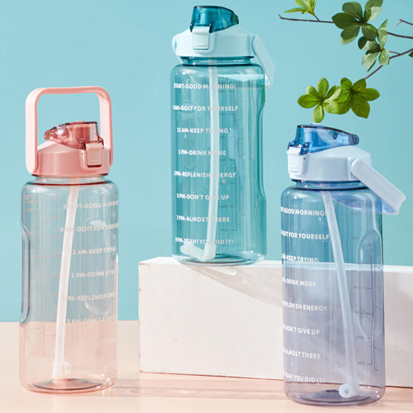 ขวดน้ำกีฬาขนาดใหญ่ WHY86 ความจุเยอะ ป้องกันการรั่วซึม พกพาสะดวก พร้อมฝาปิดและหลอดดูด มีขีดบอกปริมาณ 2 ลิตร ขายส่ง