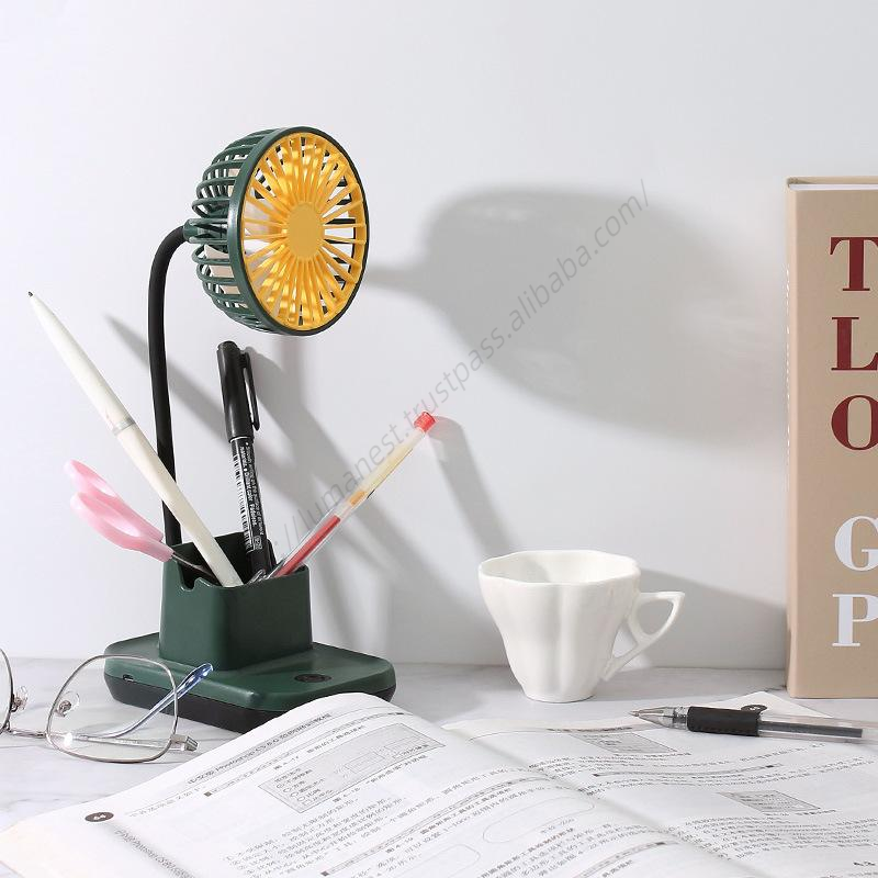 พัดลมตั้งโต๊ะแบบพกพา WXL183 ชาร์จไฟได้ ใช้ได้ทั้งภายนอกและภายในบ้าน สำหรับสำนักงาน ท่อปรับได้ พร้อมฐานวางแบบปากกา