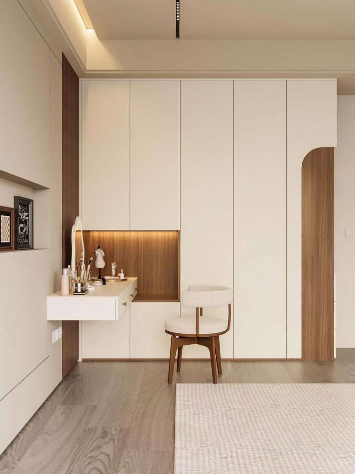 ระบบตู้เสื้อผ้าขายส่งพร้อมโต๊ะเครื่องแป้ง ประตูบานเลื่อน เฟอร์นิเจอร์ห้องนอน ชุดตู้เสื้อผ้าแบบโมดูลสำหรับโครงการปรับปรุงบ้าน