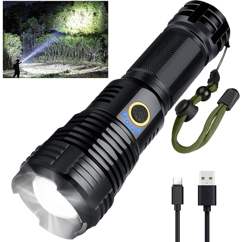 ไฟฉายยุทธวิธีพลาสติกกันน้ำ IP54 ความสว่างสูง 15W ชาร์จ USB ได้ พกพาสะดวก ซูมได้ แรงสุดๆ ขายส่ง