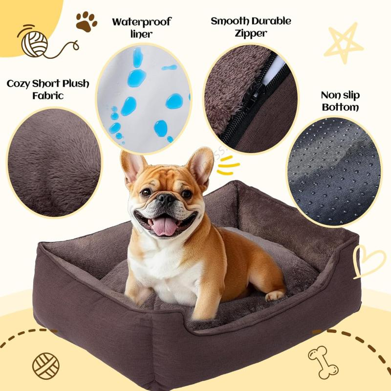 เตียงนอนสัตว์เลี้ยงแบบกันน้ำรูปทรงสี่เหลี่ยมผืนผ้า พร้อมเมมโมรี่โฟม ซักได้ ช่วยลดความวิตกกังวลสำหรับสุนัข ขายส่ง