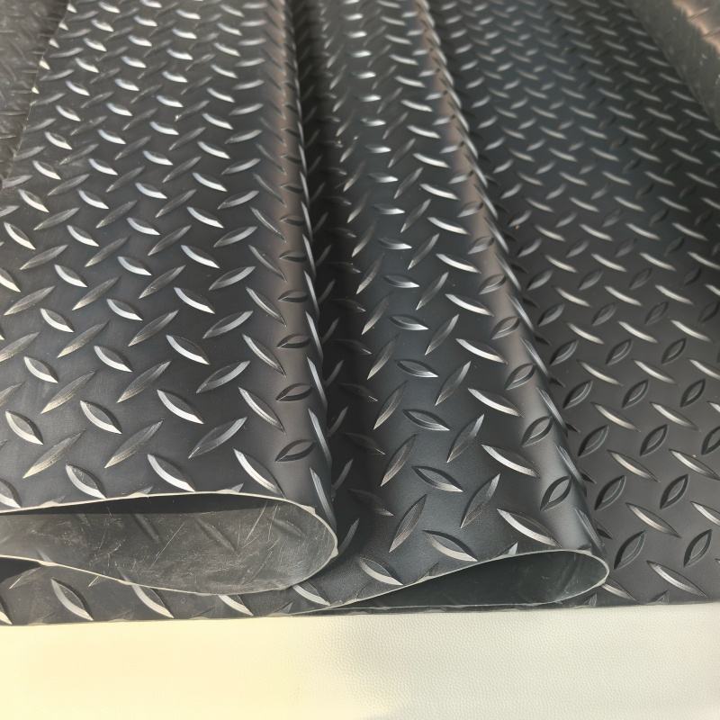 แผ่นรองพื้นรถยนต์/รถบัส PVC สีเทา/ดำ หนา 2 มม./2.5 มม. ทนทานต่อการสึกหรอ กันลื่น ขายส่งแบบม้วน