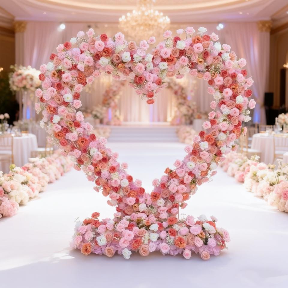 ซุ้มดอกไม้งานแต่งงานขายส่ง ซุ้มดอกไม้ประดิษฐ์รูปหัวใจ ฉากหลังงานแต่งงาน จัดดอกไม้ตกแต่งงานอีเว้นท์