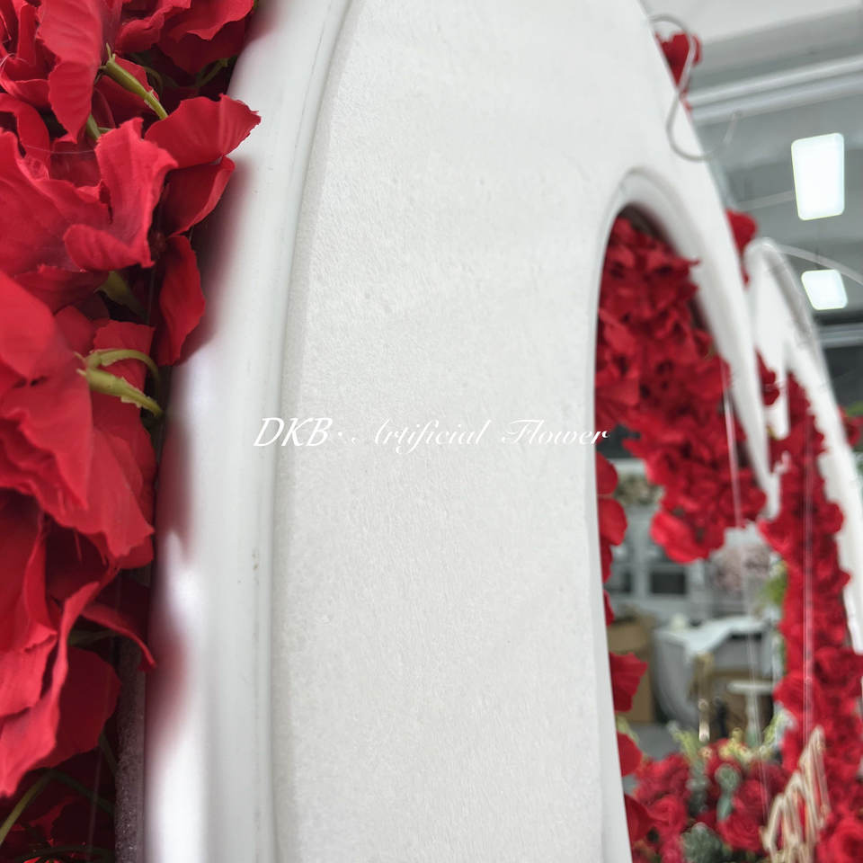 อุปกรณ์ตกแต่งซุ้มดอกไม้รูปหัวใจสีแดงดอกกุหลาบโค้งประดิษฐ์รูปหัวใจสีแดง
