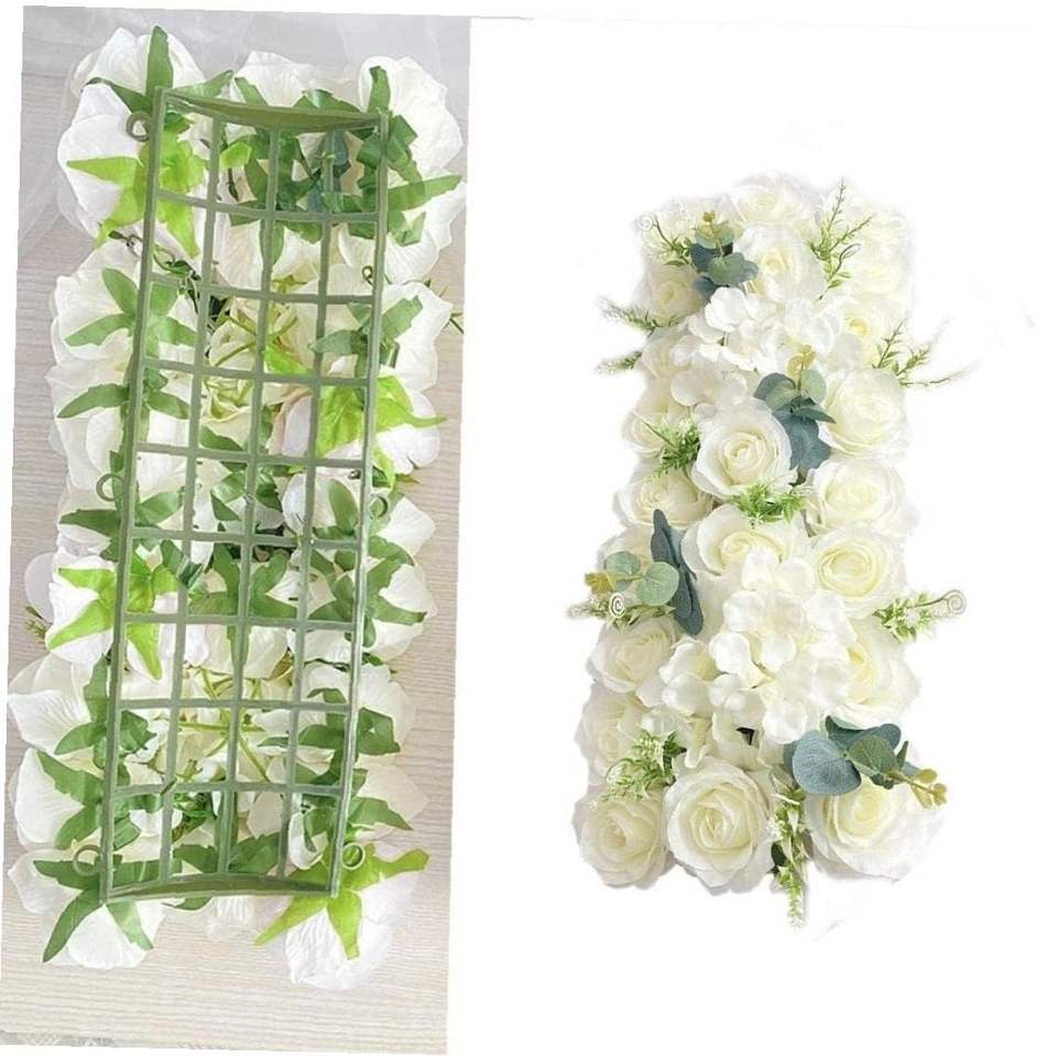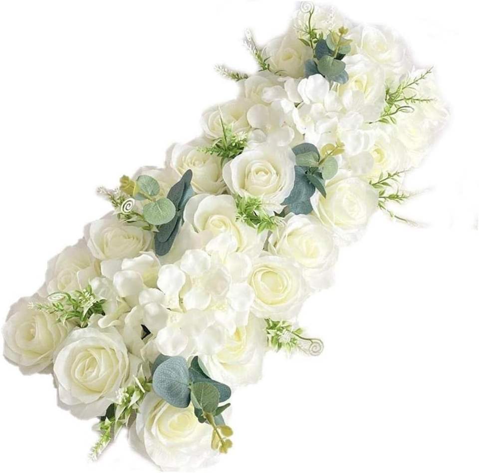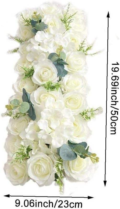 ผ้าคาดโต๊ะทำจากผ้าไหมเทียมสีขาวประดับกุหลาบผ้าปูโต๊ะดอกไม้ประดิษฐ์สำหรับตกแต่งงานแต่งงาน