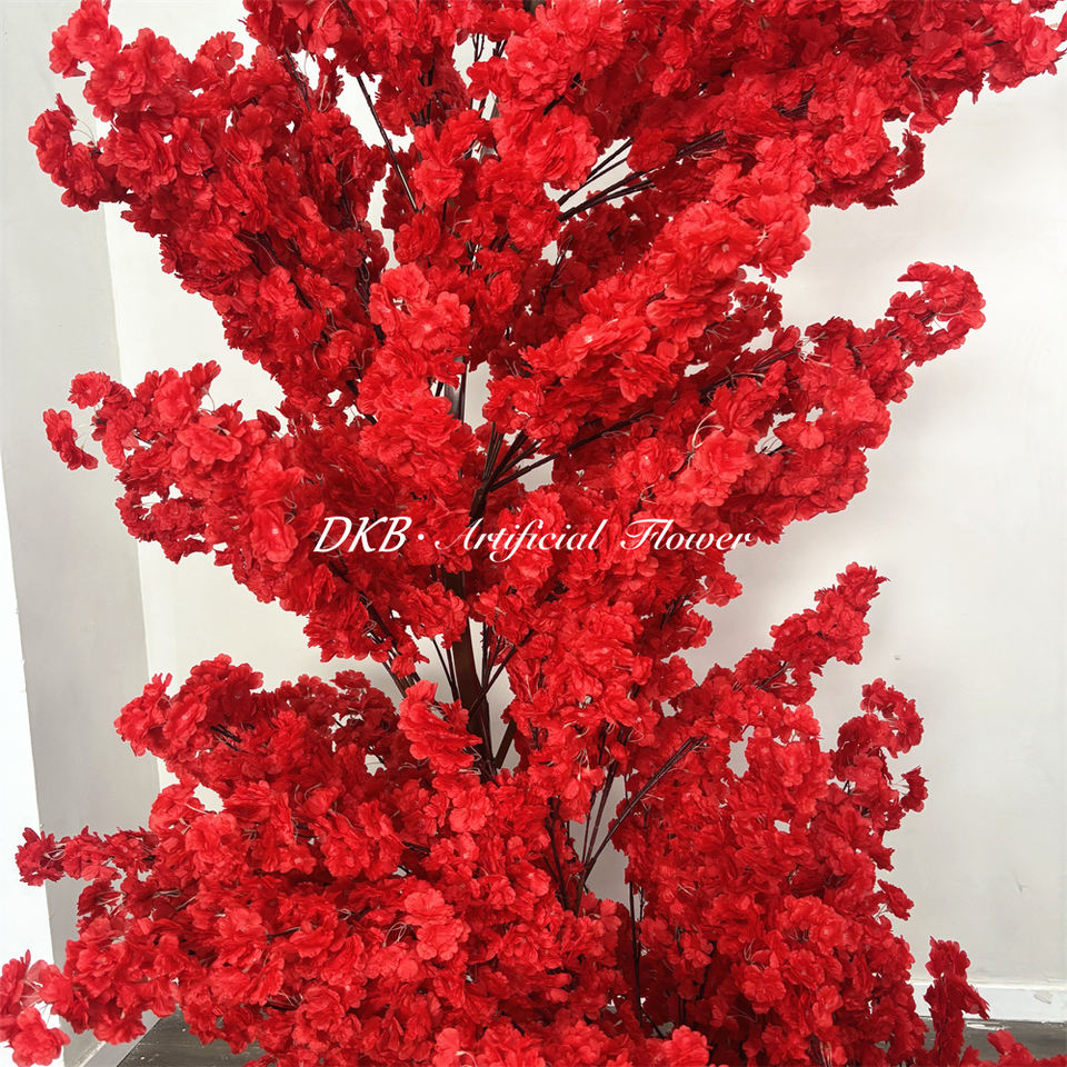 อุปกรณ์จัดงานแต่งงานขายส่ง ซุ้มดอกซากุระสีแดงประดิษฐ์จากผ้าไหมคุณภาพสูง ทนน้ำ สำหรับตกแต่งฉากหลัง