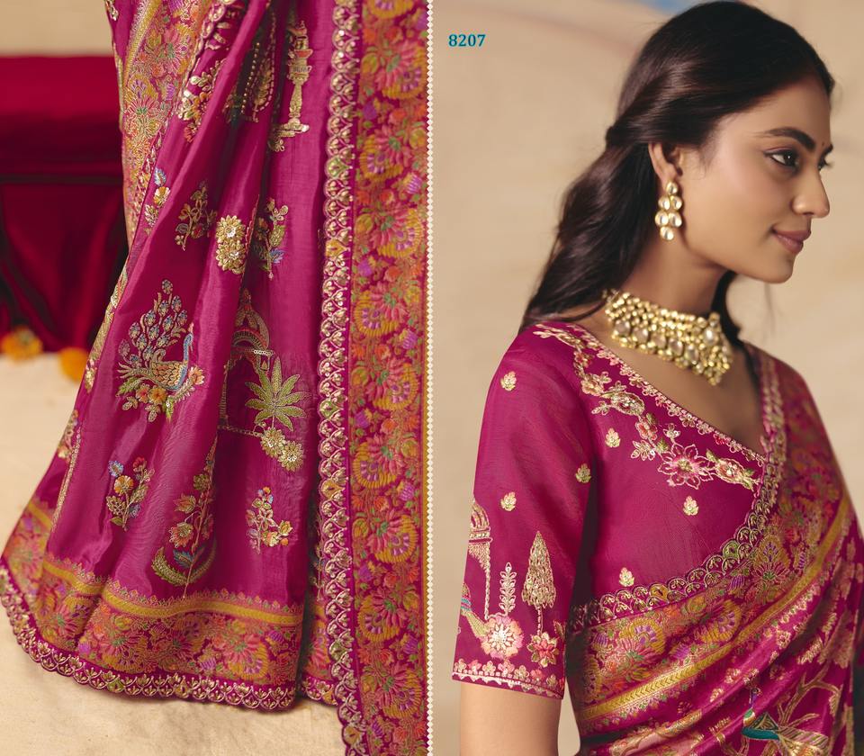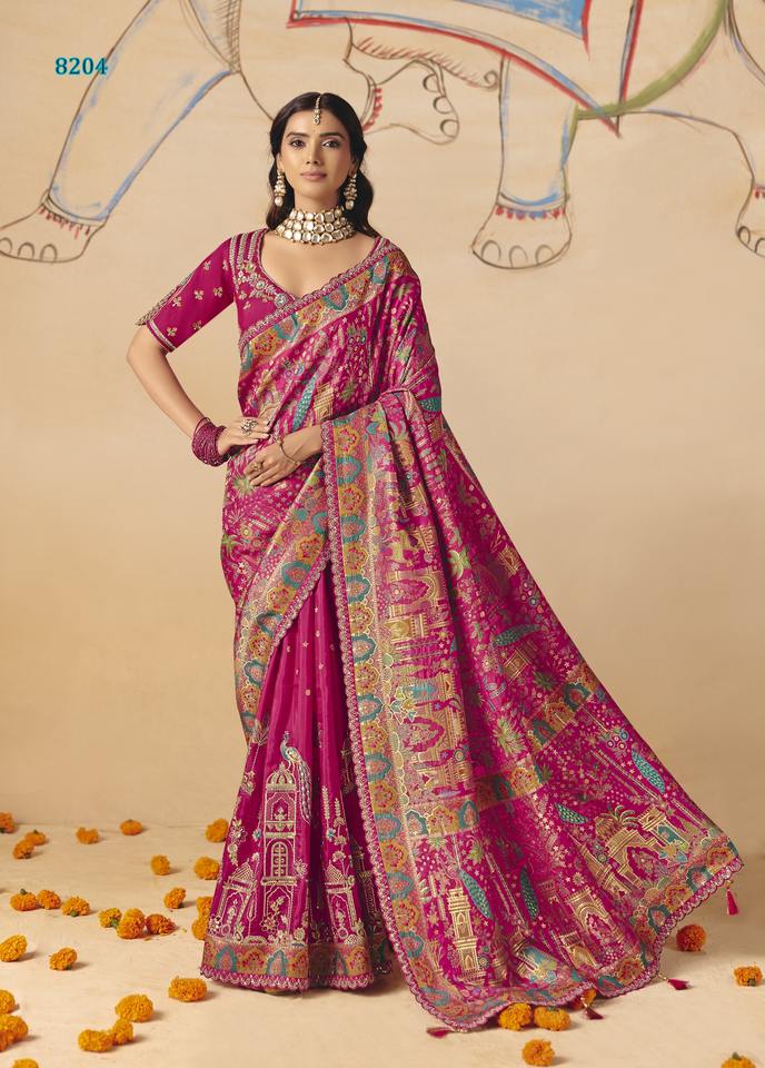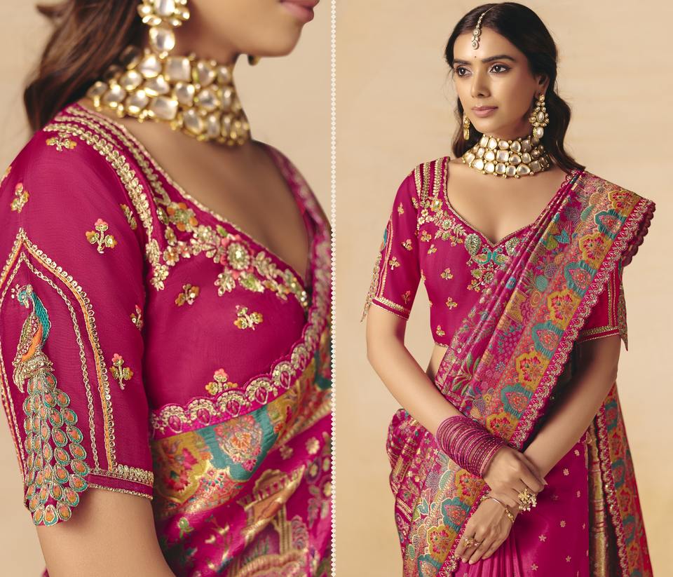 คอลเลกชั่นส่าหรีผ้าไหมสำหรับงานแต่งงานเสื้อผ้าสไตล์ชนเผ่าหรูหราน้ำหนักเบาพร้อมดีไซน์หรูหราและรายละเอียดที่หลากหลาย