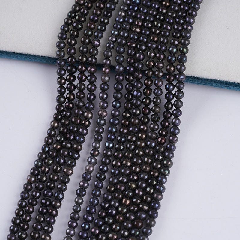 ไข่มุกน้ำจืดธรรมชาติสีขาวเวนชีขายส่ง ขนาด 3.5-4 มม. รูปทรงกลม เจาะรูเล็ก อุปกรณ์ทำสร้อยคอ DIY ไข่มุกแบบเม็ดเดี่ยว