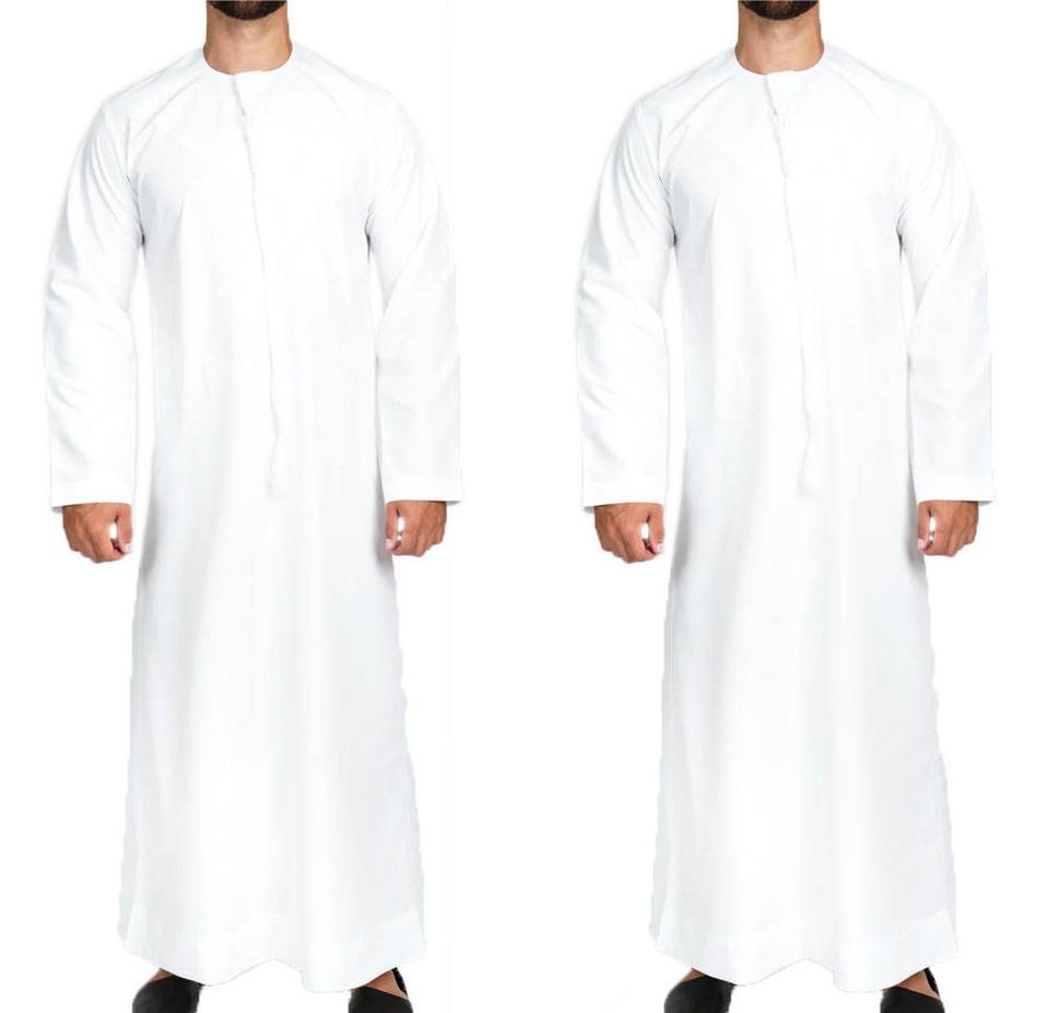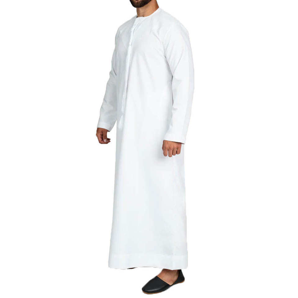 เสื้อคลุมโทบส์สีขาวล้วนสำหรับผู้ชาย ขายส่ง ชุดมุสลิมแบบอบายะห์ เสื้อคลุมโทบส์แบบคูเวต ชุดจุบบะฮ์สำหรับผู้ชาย เสื้อคลุมจุบบะฮ์แบบดูไบ ระบายอากาศได้ดี
