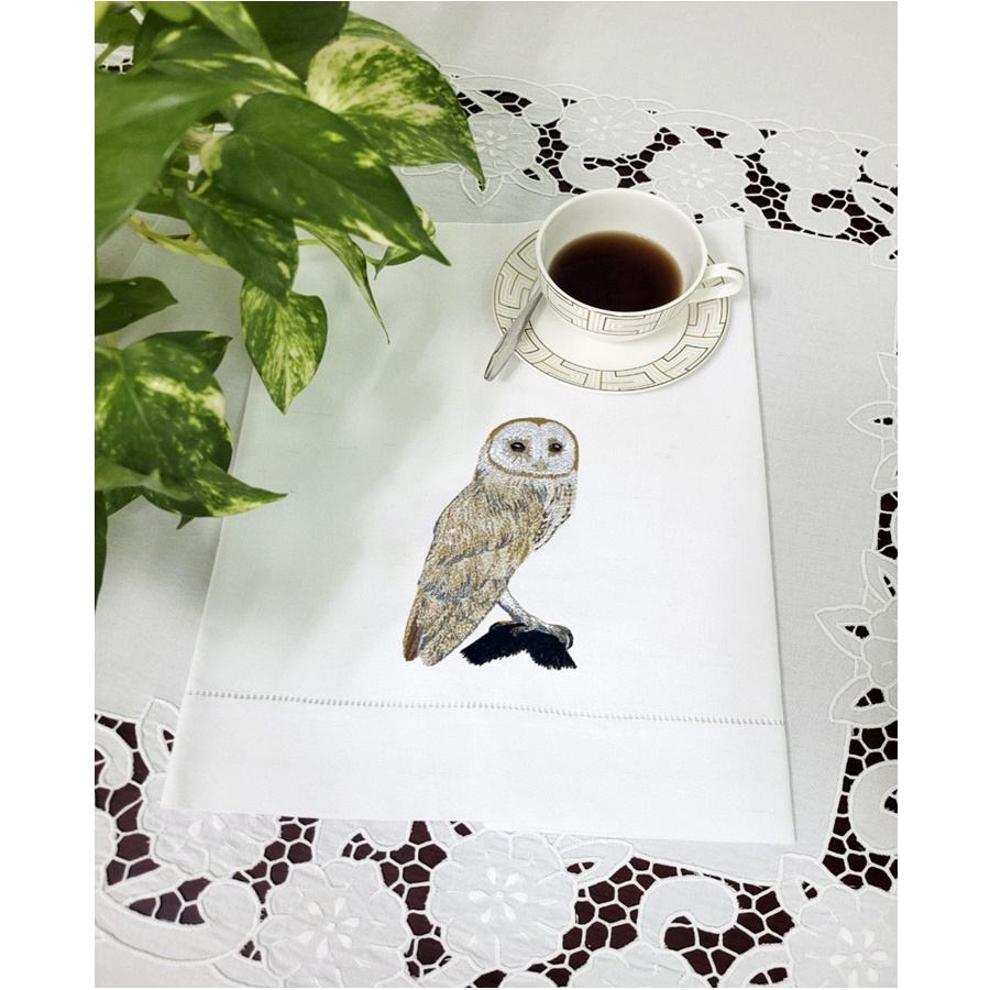 ผ้าเช็ดตัวแขกผ้าฝ้ายสีขาวขายส่ง ปักลายนกฮูกน่ารัก ผ้าเช็ดปากแบบเย็บริม ผ้าเช็ดปากสำหรับชา เหมาะสำหรับใช้ในบ้าน โรงแรม งานแต่งงาน และงานอีเว้นท์ต่างๆ