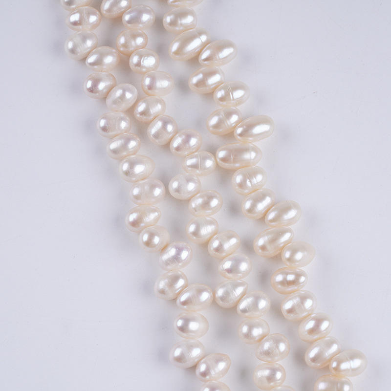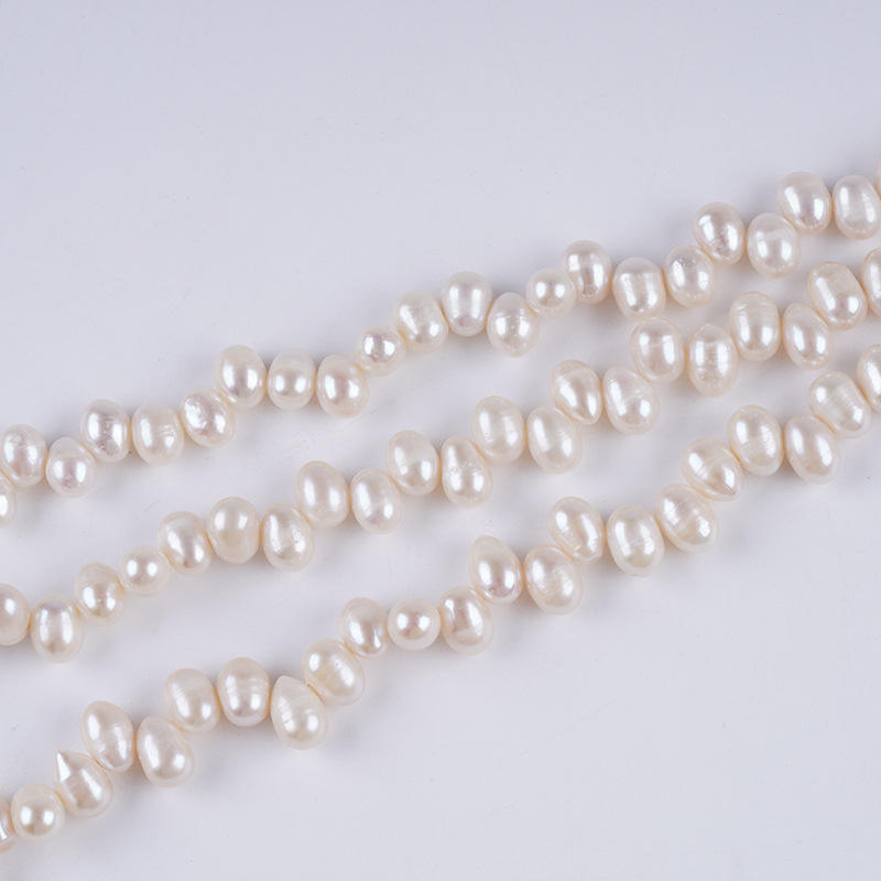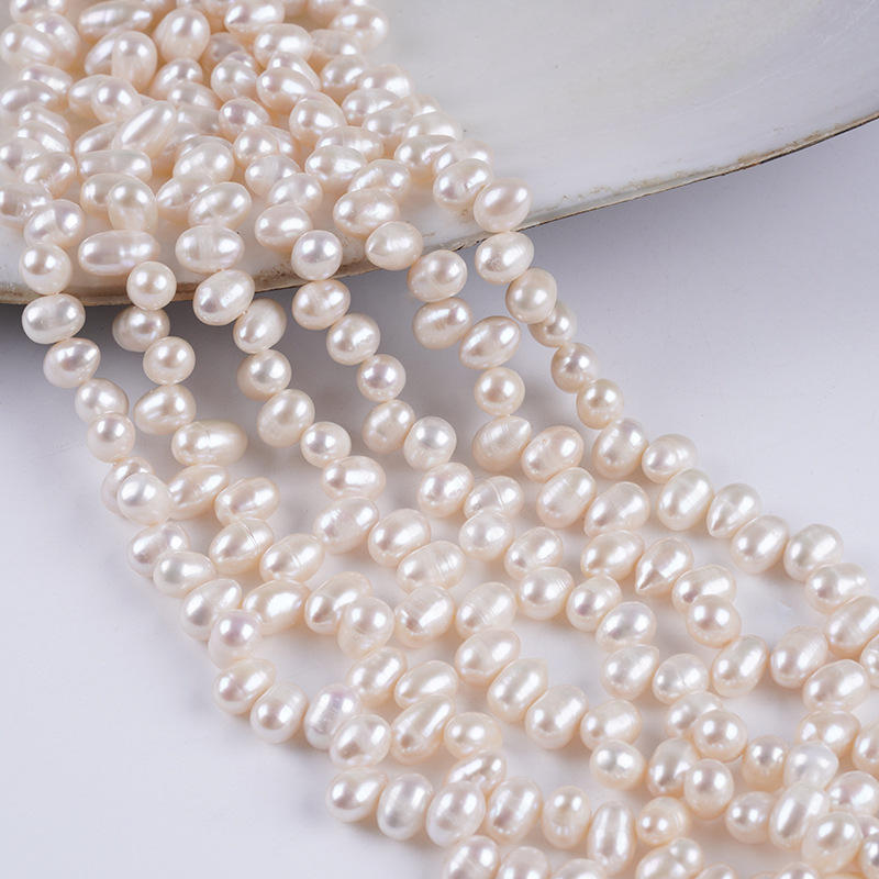 สร้อยคอมุกน้ำจืดสีขาวทรงข้าว ขนาด 6-7 มม. สำหรับงาน DIY อุปกรณ์กึ่งสำเร็จรูป มีรูสำหรับร้อย