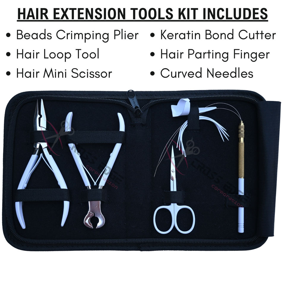 ชุดเครื่องมือต่อผมพร้อมคีมหนีบลูกปัดขนาด 5 นิ้ว