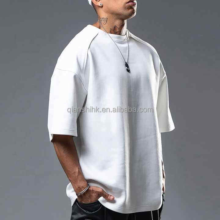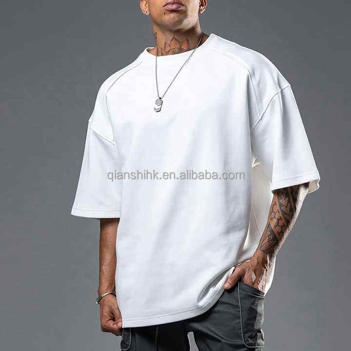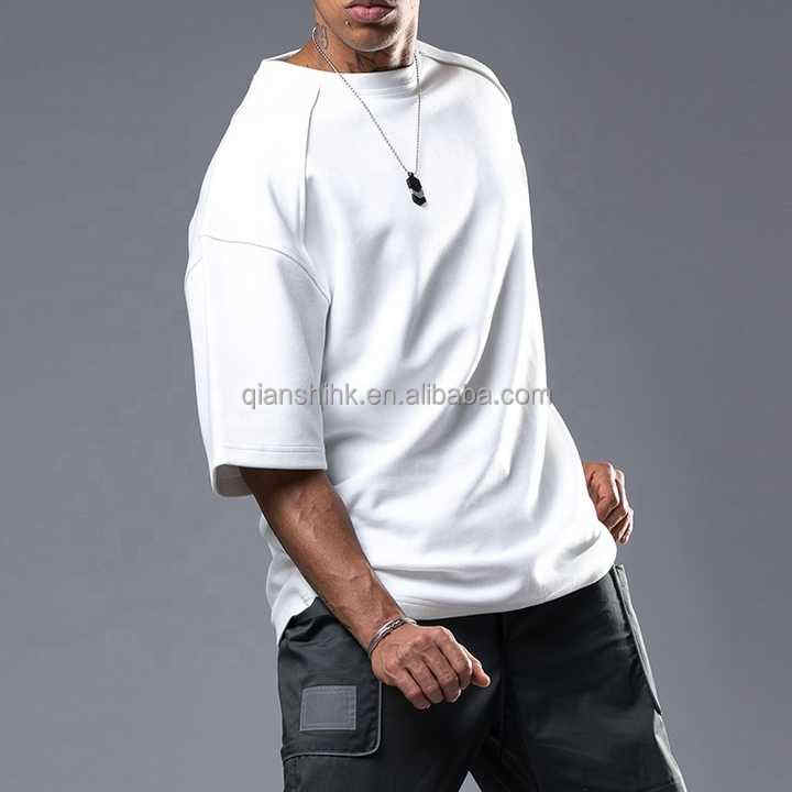 เสื้อบ็อกซี่คอตตอนหนักใส่ได้ทั้งชายและหญิงเสื้อยืดธรรมดาคอกลมแบบปล่อยไหล่เสื้อโอเวอร์ไซส์ใหญ่พิเศษ