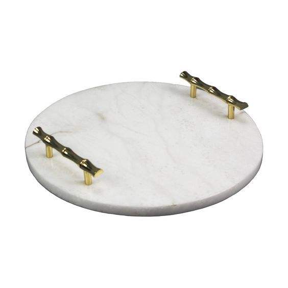 ขายส่งหินอ่อนสีขาวและโลหะออกแบบจับถาดเสิร์ฟขนมหวานขนมถาดเสิร์ฟเคาน์เตอร์ครัวอาหารOrganizerตําแหน่ง