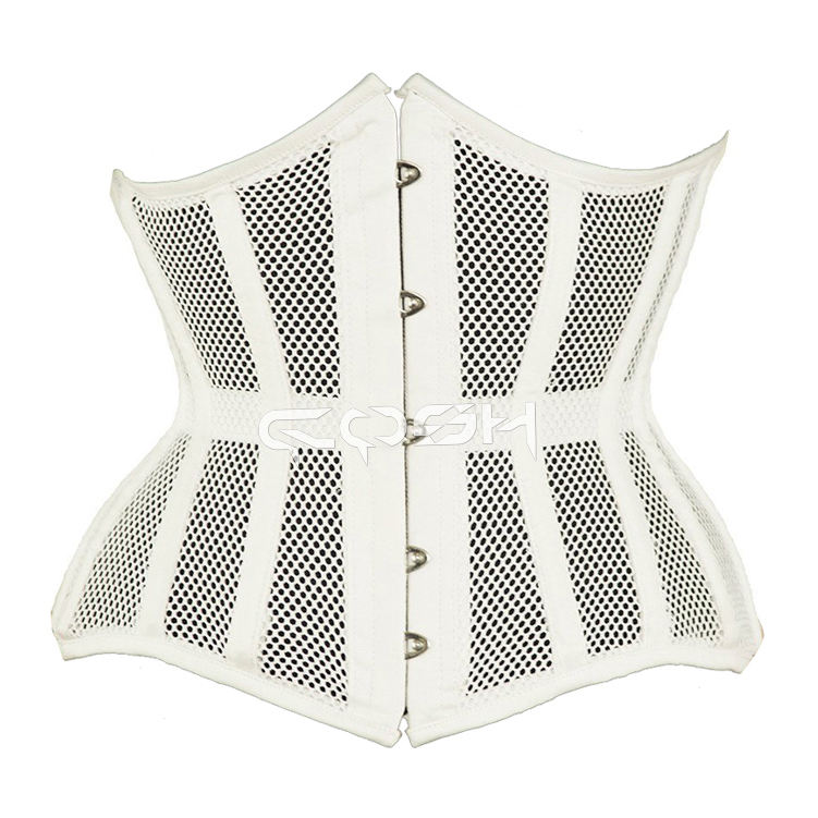 คอร์เซ็ทตาข่ายสีขาวแบบขายส่ง พร้อมโครงเหล็กและขอบตกแต่งด้วยผ้าฝ้าย
