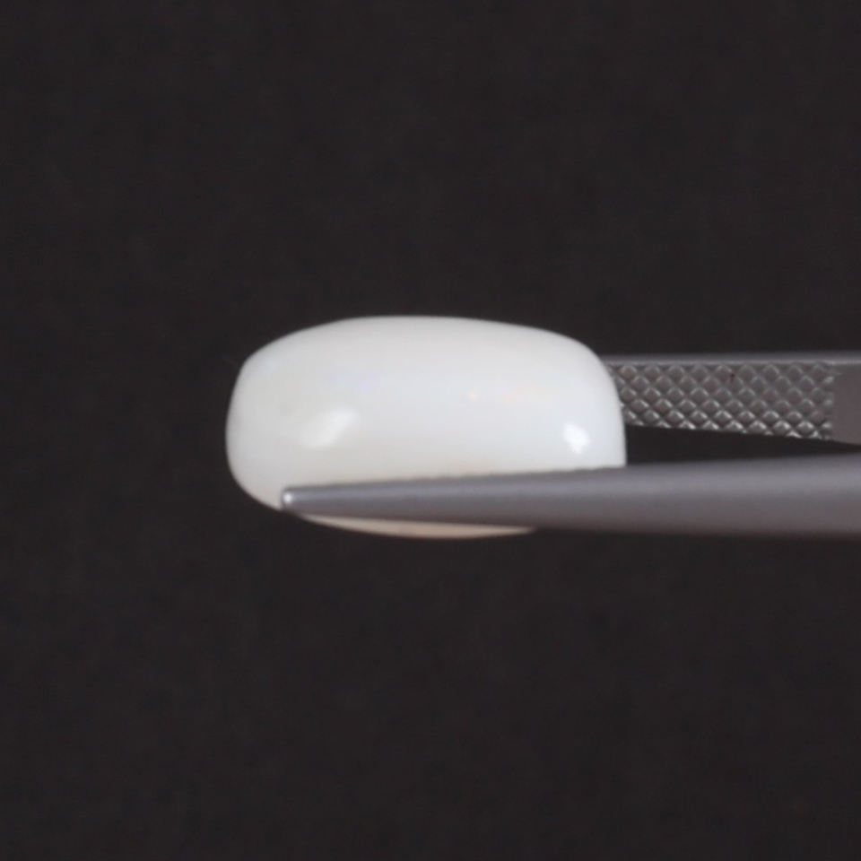 โอปอลสีขาวธรรมชาติแบบขายส่ง น้ำหนัก 6.96 กะรัต รูปทรงคุชชั่น ขนาด 14x11 มม. ได้รับการรับรองจาก IGI ขัดเงา ลงแว็กซ์/น้ำมัน ขนาดเล็ก 6 มม.