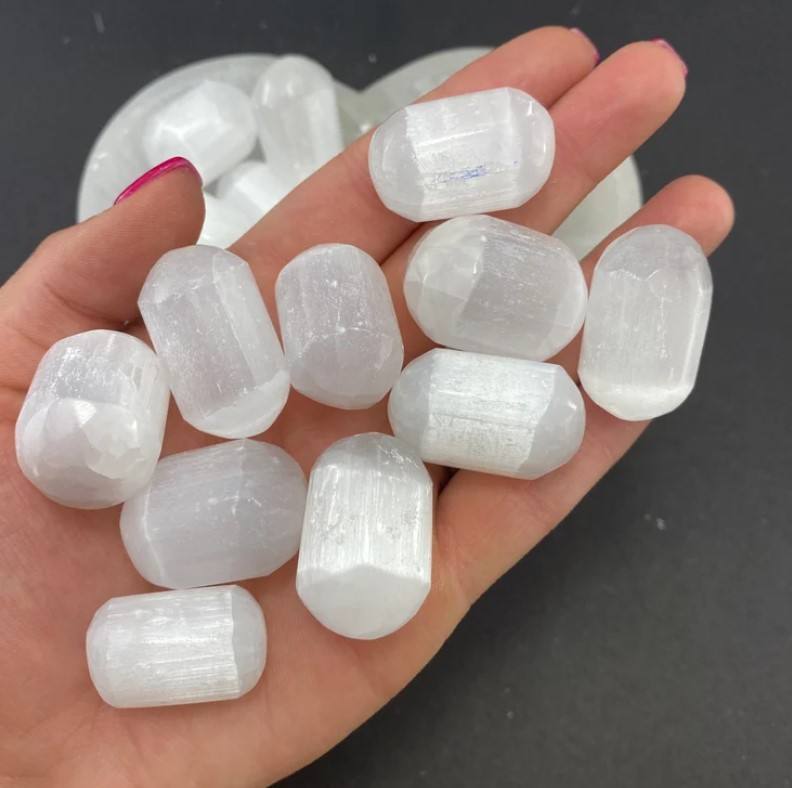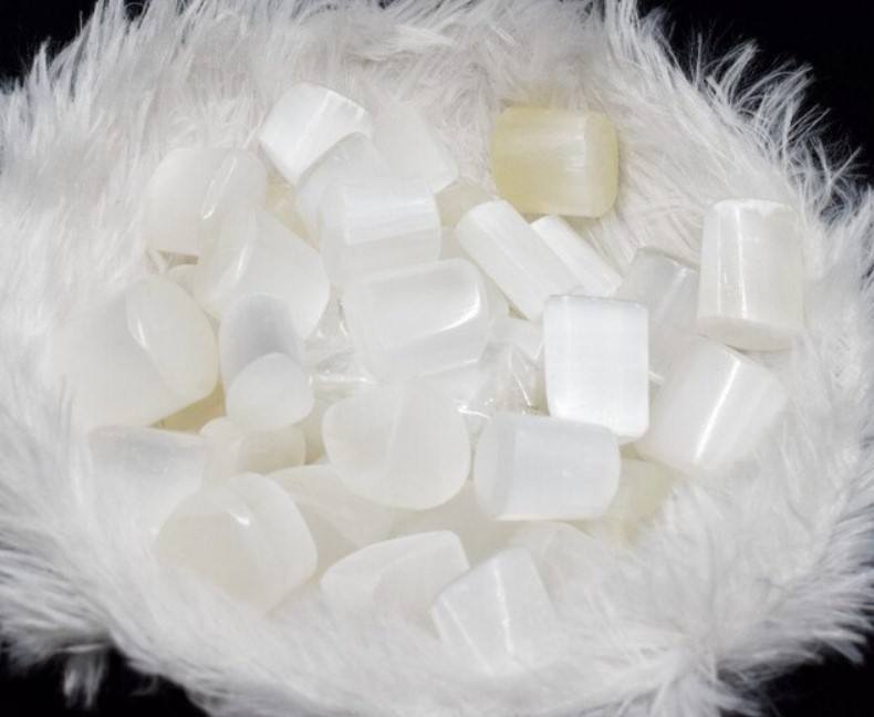 หินเซเลนไนต์สีขาวหินทัมเบิ้ลทำจากหินคริสตัลฮวงจุ้ยตามสั่งผลิตเพื่อการรักษา