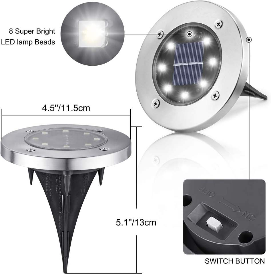 ไฟสวนพลังงานแสงอาทิตย์แบบฝังพื้น 8 LED IP65 กันน้ำ พร้อมโหมดอัตโนมัติ ใช้งานกลางแจ้งได้นาน 8-10 ชั่วโมง ขายส่ง