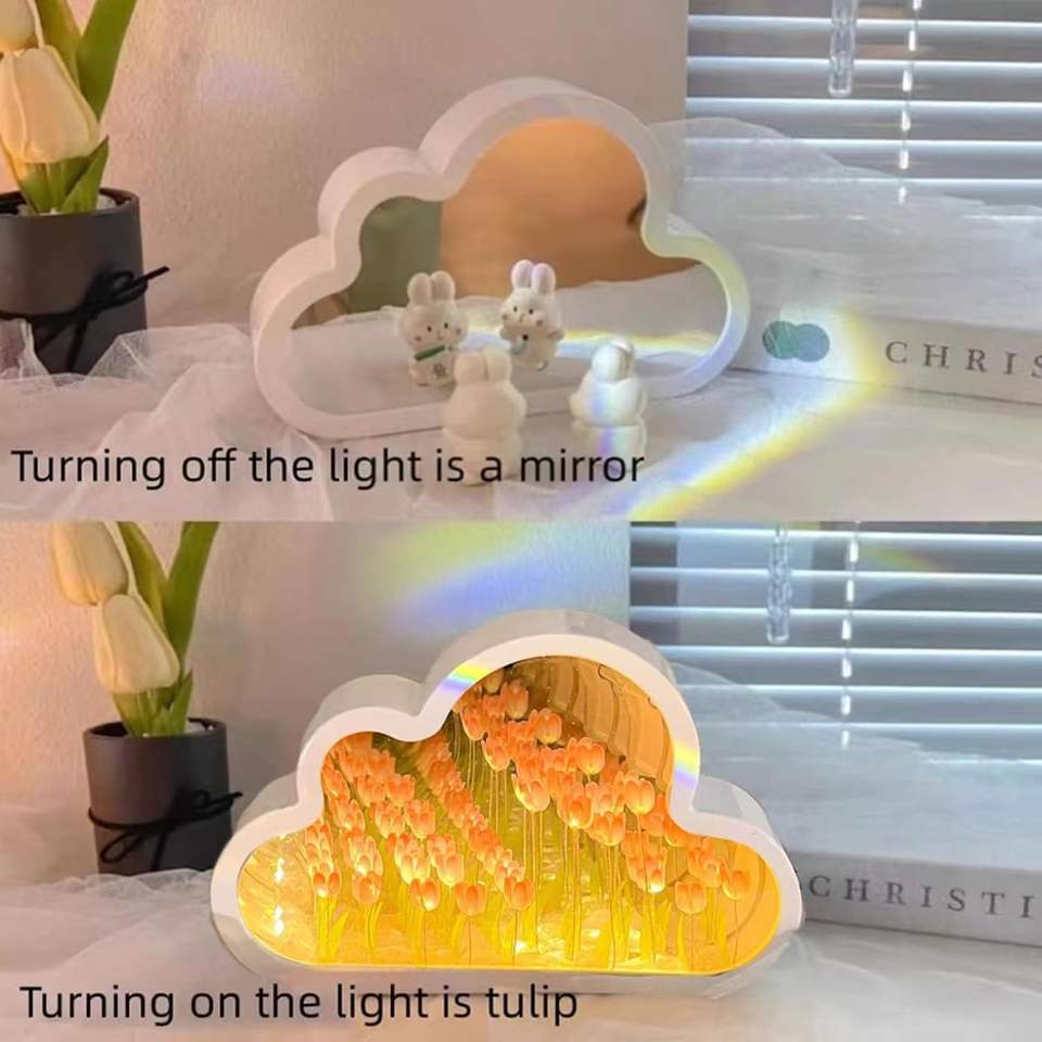โคมไฟกลางคืนรูปดอกทิวลิปเมฆพร้อมกระจก