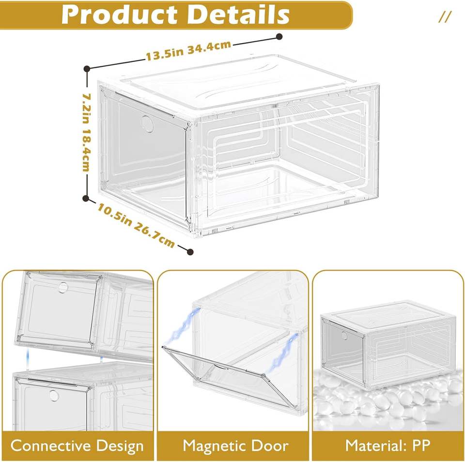 กล่องเก็บรองเท้าพลาสติกใสแบบขายส่ง ซ้อนกันได้ เปิดด้านหน้า แบบลิ้นชักอะคริลิค กล่องแม่เหล็ก