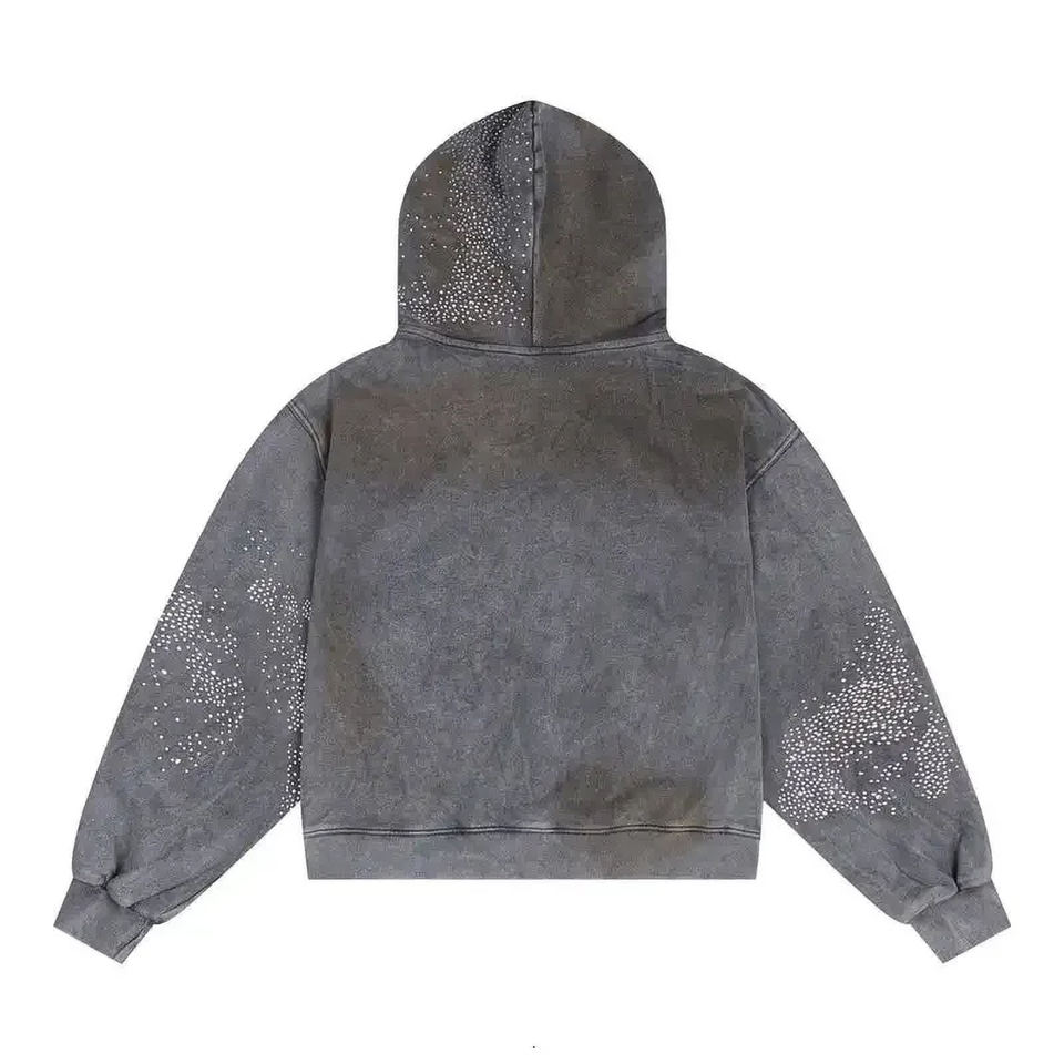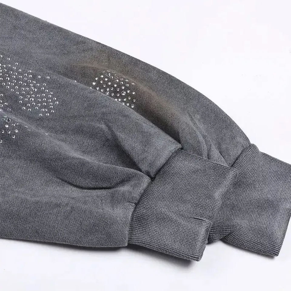 เสื้อฮู้ดกันลมผู้ชายเสื้อฮู้ดแฟชั่นแบบลำลองพิมพ์ลายด้วยความร้อนพลอยเทียมกรดซักโลโก้ออกแบบได้ตามต้องการ