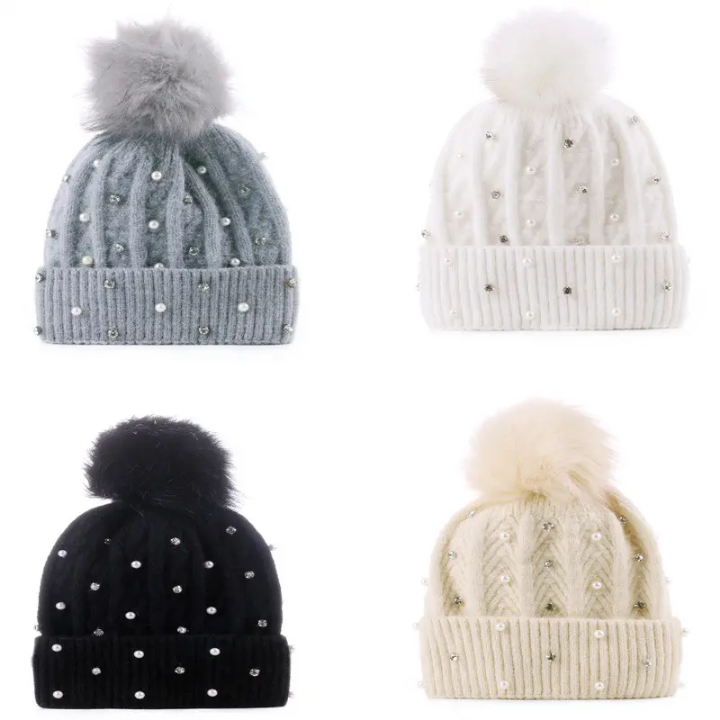 หมวกบีนนี่ประดับพลอยเทียม