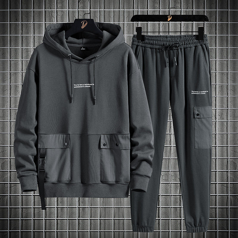 ชุดวอร์มลำลองสำหรับผู้ชายมีฮู้ดและกระเป๋าหลายช่องพิมพ์โลโก้ตามสั่งสำหรับฤดูหนาว