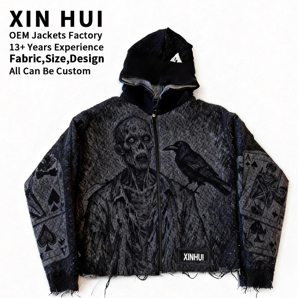 แจ็คเก็ตบอมเบอร์ผู้ชายสั่งทำพิเศษสำหรับฤดูหนาว ปกตั้ง ผลิตจากวัสดุรักษ์โลก กันน้ำ กันลม ซิปเต็มตัว ขอบเย็บอย่างดี