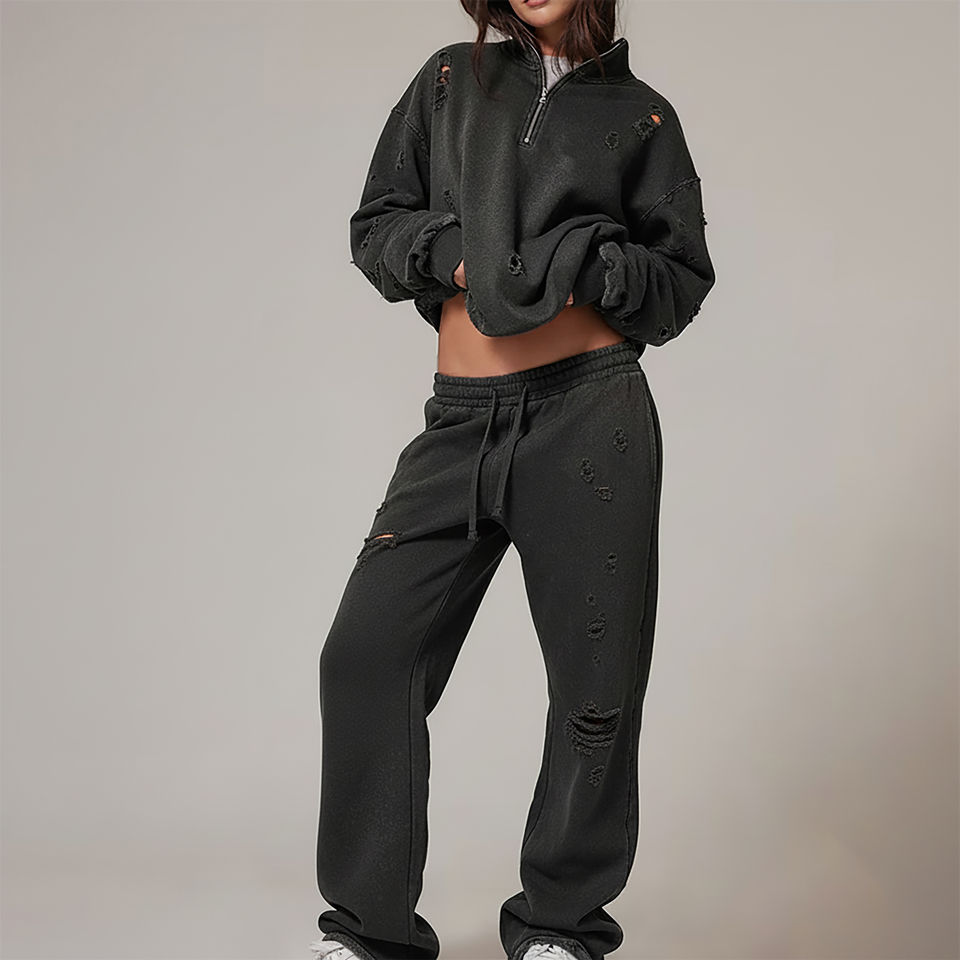 ชุดวอร์มผู้หญิงไซส์ใหญ่พิเศษสำหรับฤดูหนาว ผ้าฝ้าย 100% แต่งลูกไม้ สีพื้น พิมพ์โลโก้ตามสั่ง หนานุ่ม สไตล์ฮิปฮอป 2 ชิ้น