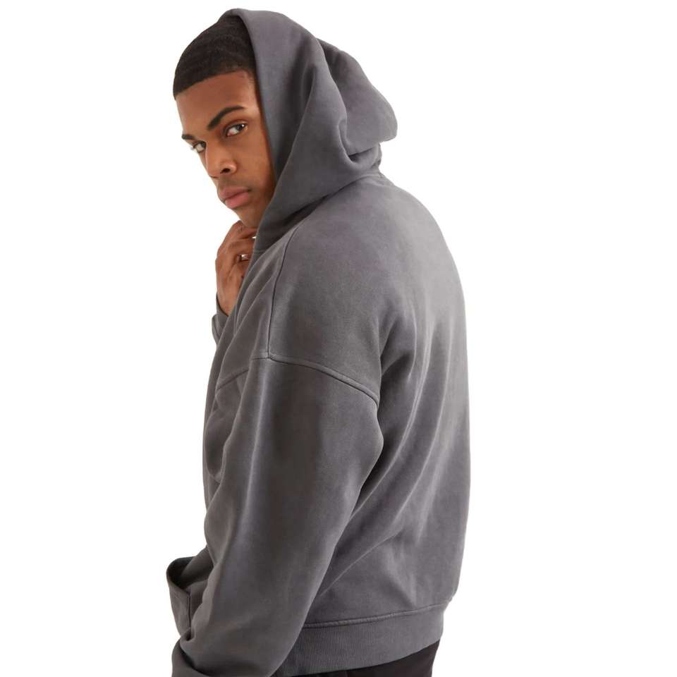 เสื้อฮู้ดสตรีทแวร์ผู้ชายแบบเรียบง่ายสำหรับฤดูหนาว ขายส่ง รับทำโลโก้ ผ้าฝ้ายฟลีซหนานุ่ม ทรงโอเวอร์ไซส์ ไหล่ตก
