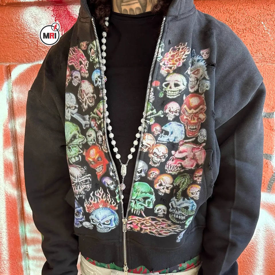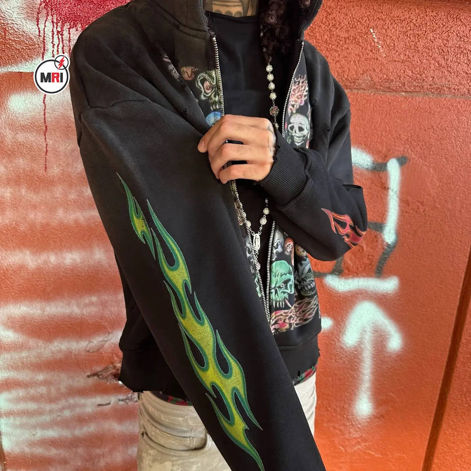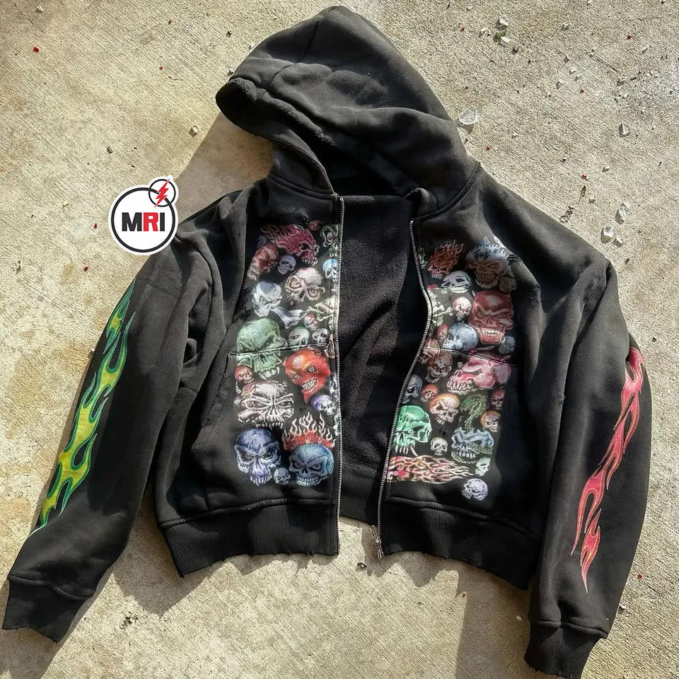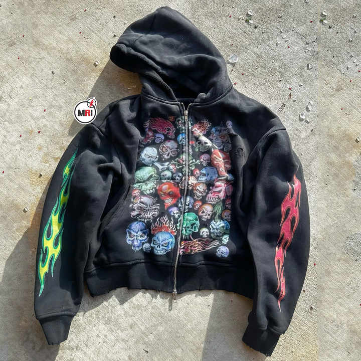 เสื้อคอตตอนขนแกะคอปกมีฮู้ดระบายอากาศน้ำหนักมากแบบรูดซิปขึ้นสไตล์สตรีทอินเทรนด์พิมพ์ลายสำหรับฤดูหนาวตามสั่ง
