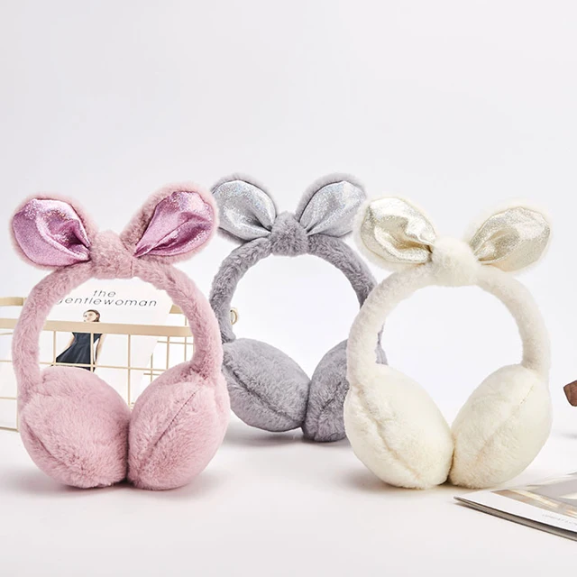 Wholesale High Quality Four Season Winter Rabbit Ear Earmuffs Boys Girls Bow Plush 100% Polyester Keep Warm Defend Cold Folding