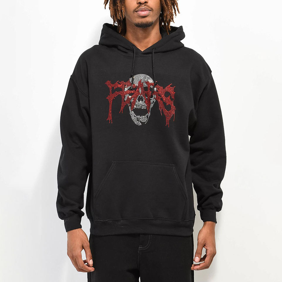 Wholesale Winter Streetwear High Quality Men's Heavy 100% Cotton Fleece Pullover Drawstring Hoodie Custom Rhinestone Design