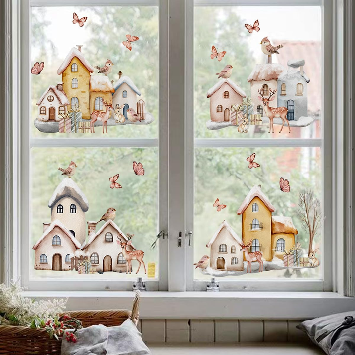 สติ๊กเกอร์ติดกระจกตกแต่งหน้าหนาวแบบขายส่ง เป็นมิตรกับสิ่งแวดล้อม ใช้ซ้ำได้ ติดแน่นด้วยไฟฟ้าสถิต กระดาษสองด้าน ป้องกันรังสียูวีและน้ำ