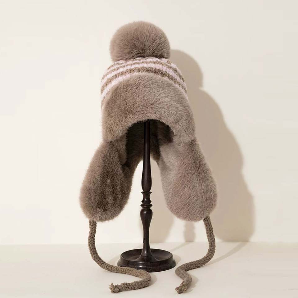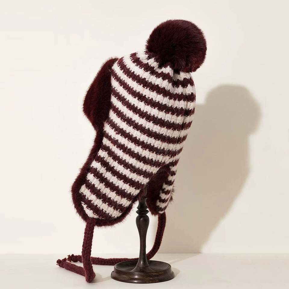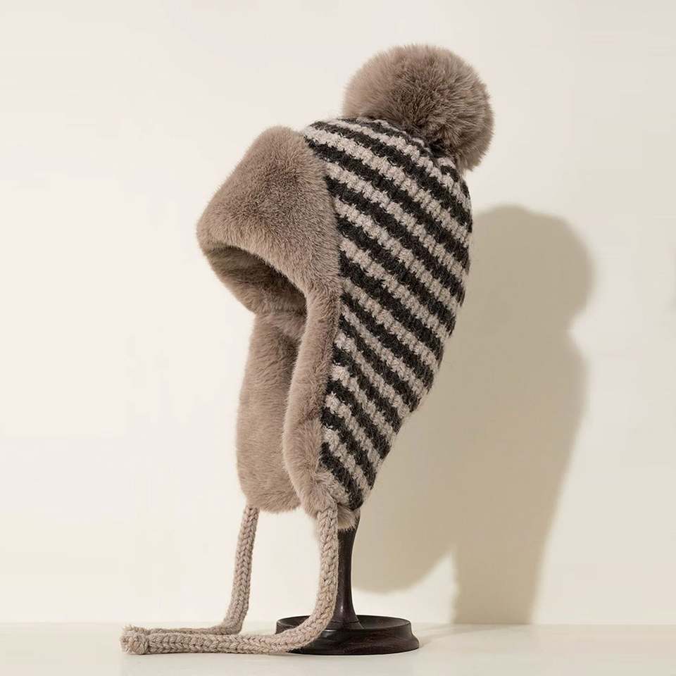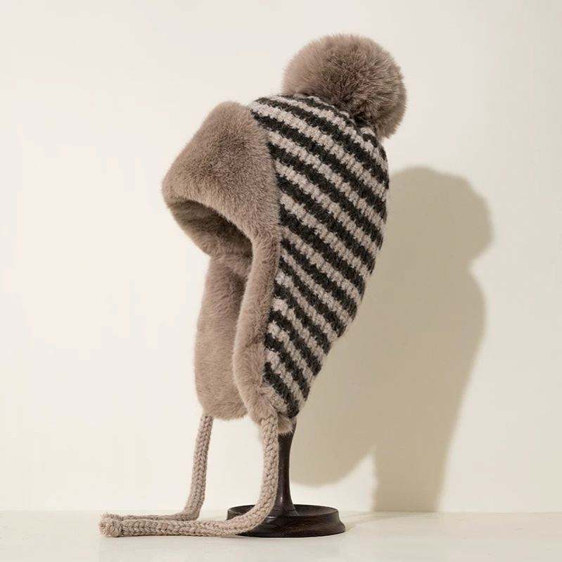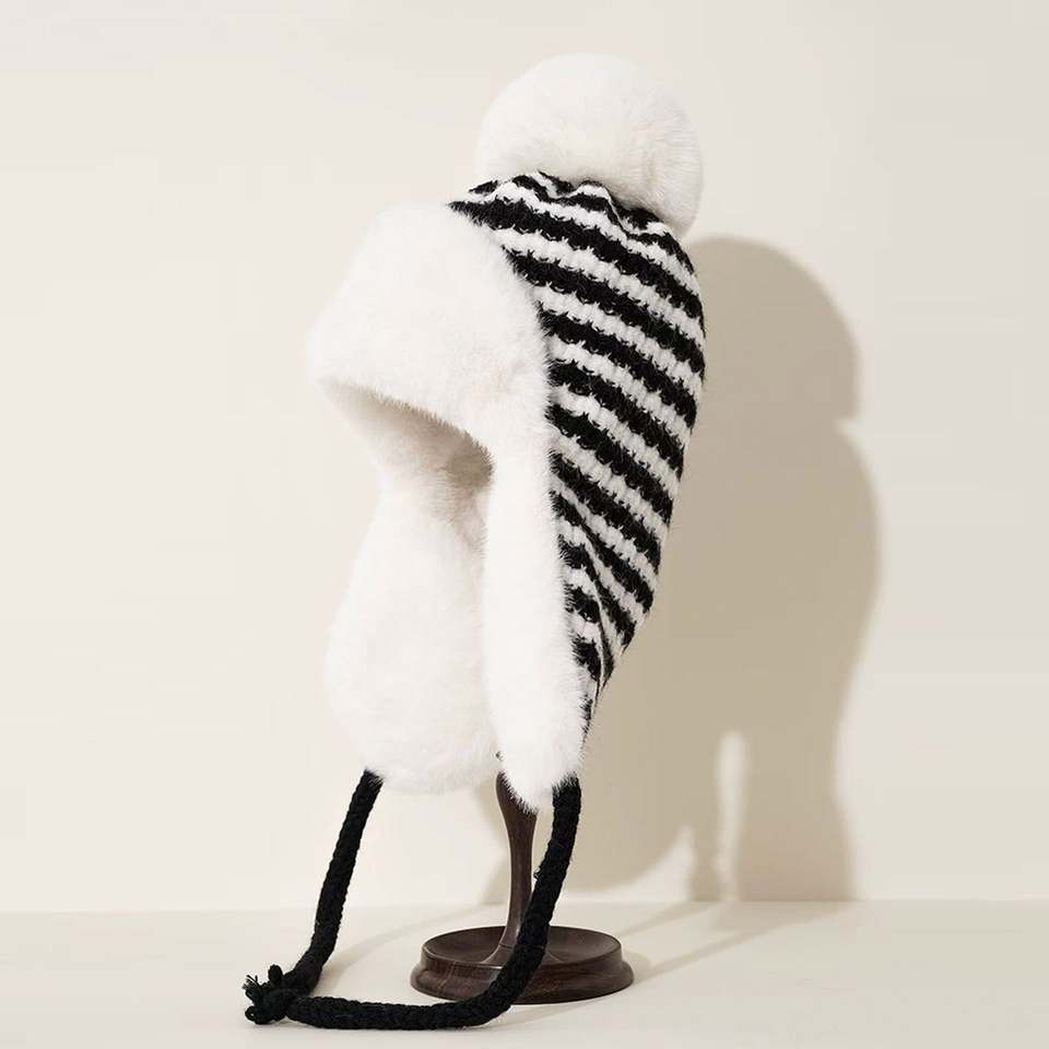 หมวกถักของผู้หญิงหมวกรัสเซียหนาป้องกันหูลายทางสำหรับขี่จักรยานกันลมหมวกดักสัตว์