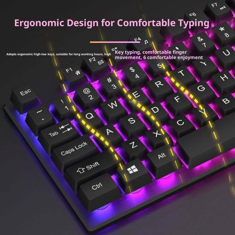 ชุดคีย์บอร์ดและเมาส์แบบมีสายพร้อมไฟเรืองแสง ขายส่ง ชุดคีย์บอร์ดแบบกลไกสัมผัสพร้อมไฟเรืองแสงแบบมีสายและเมาส์ ขายส่ง