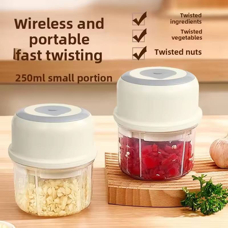 เครื่องบดสับอาหารแบบพกพาไร้สาย USB ขนาด 250 มล. สำหรับผัก เนื้อ กระเทียม หัวหอม ขายส่ง