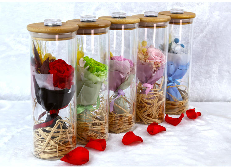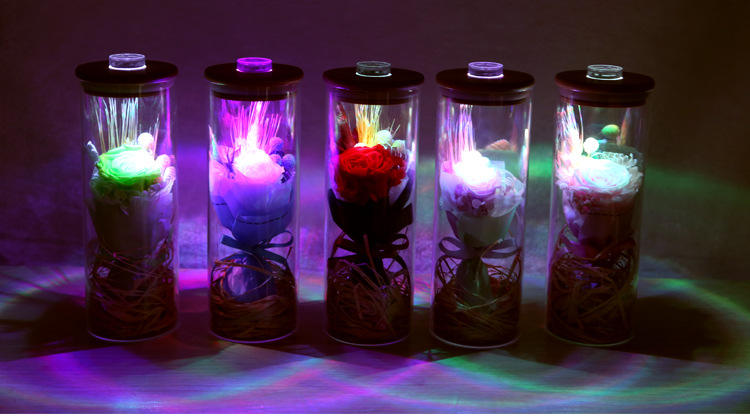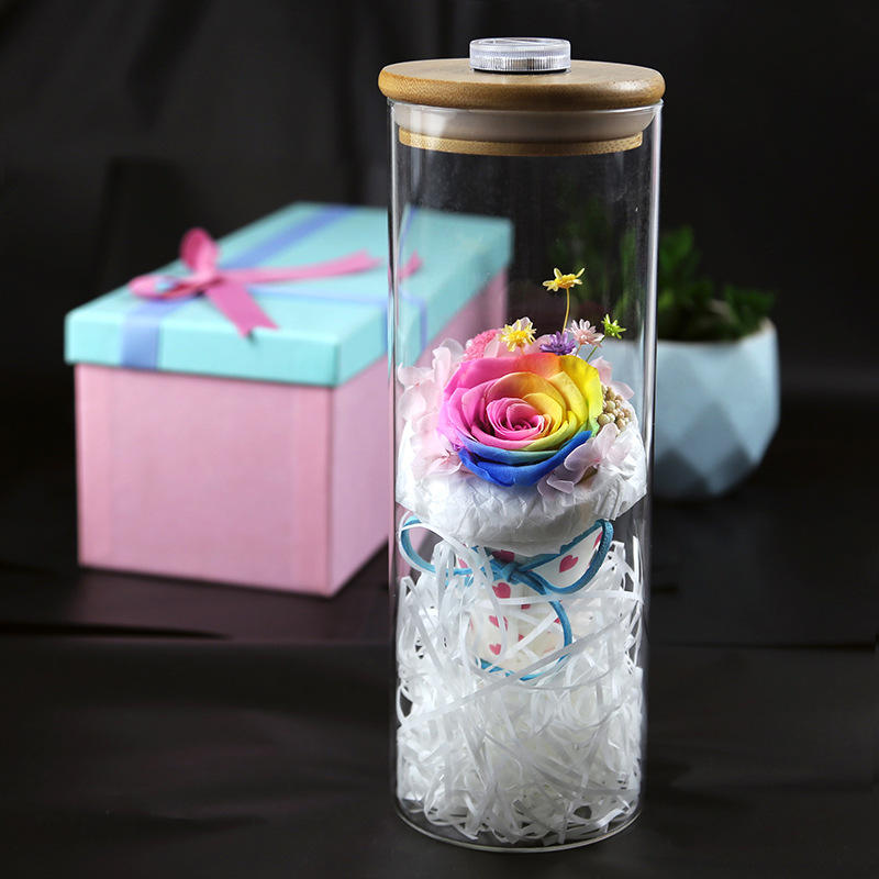 ขายส่งขวดที่ต้องการสายรุ้ง Led เก็บรักษาไว้นิรันดร์กุหลาบในโดมแก้วสำหรับของขวัญวันพ่อ