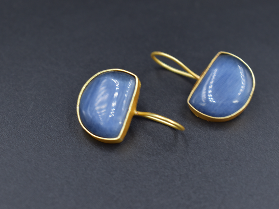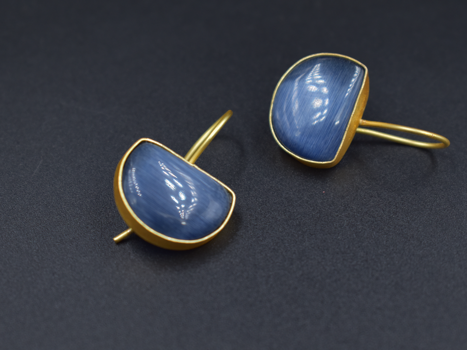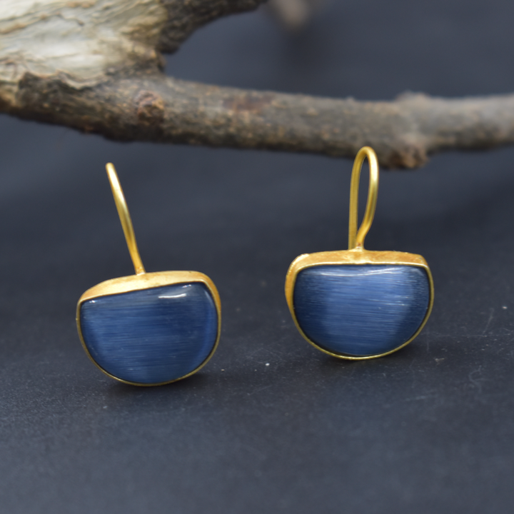 ต่างหูทองเหลืองชุบทอง18K สำหรับผู้หญิงต่างหูเม็ดกลมหินธรรมชาติ