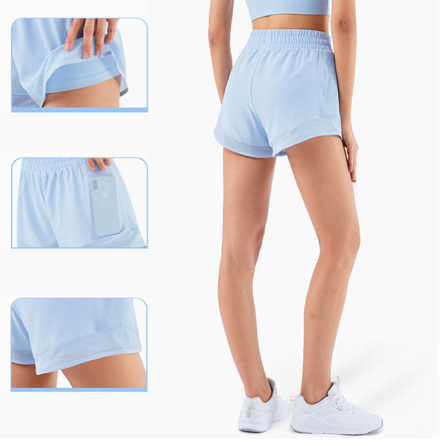 กางเกงขาสั้นออกกำลังกายสำหรับผู้หญิงขายส่ง ยืดได้สี่ทิศทาง เหมาะสำหรับฟิตเนส โยคะ ออกกำลังกาย กีฬา กระชับสะโพก ทรงสปอร์ตไบค์เกอร์