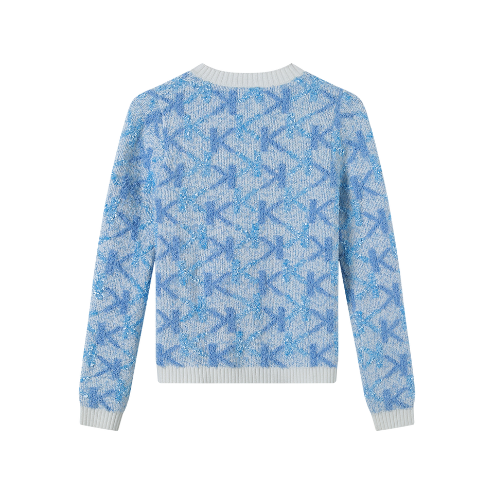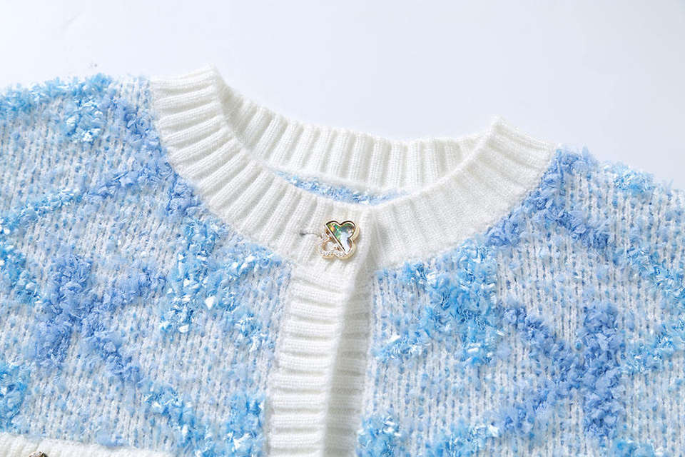 เสื้อสเวตเตอร์ถักสำหรับผู้หญิงเสื้อโค้ทคอกลมแขนยาวดีไซน์แบบถัก