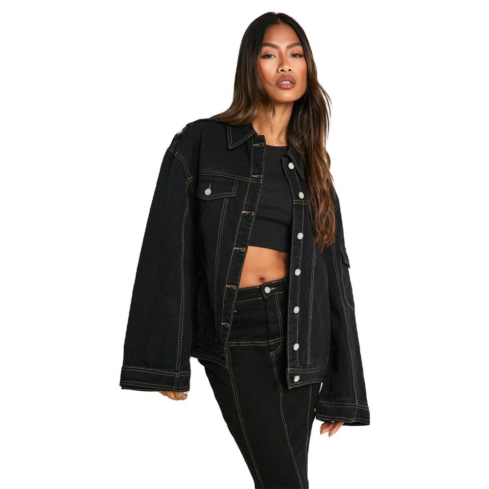 เสื้อแจ็คเก็ตเดนิมโอเวอร์ไซส์ถักนิตติ้งคุณภาพพรีเมียมสำหรับผู้หญิง สไตล์ลำลอง สตรีทแวร์ ระบายอากาศได้ดี ขายส่ง