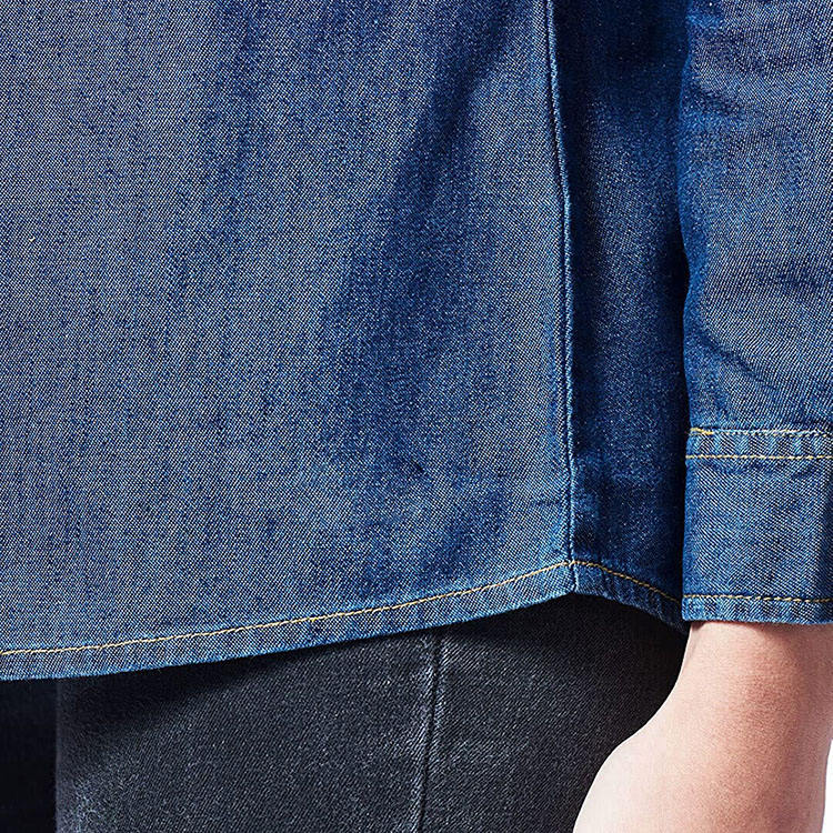 เสื้อเชิ้ตยีนส์ผู้หญิงขายส่ง กระดุมติดกระเป๋า ผ้าดิบสีน้ำเงินล้วน สไตล์วินเทจ สำหรับฤดูหนาว/ฤดูใบไม้ผลิ/ฤดูร้อน เสื้อลำลองคุณภาพสูง