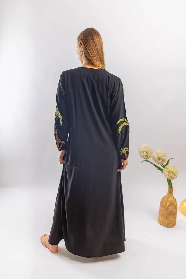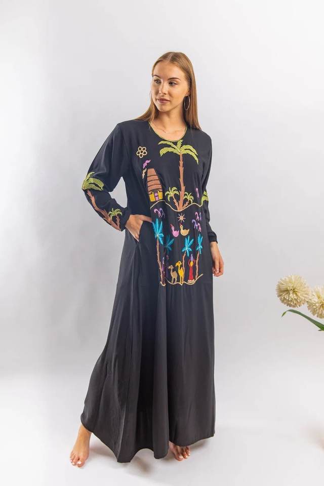 ชุดเดรสยาวสำหรับผู้หญิงชุดเดรสงานปักสไตล์วินเทจผ้าฝ้ายแขนยาว