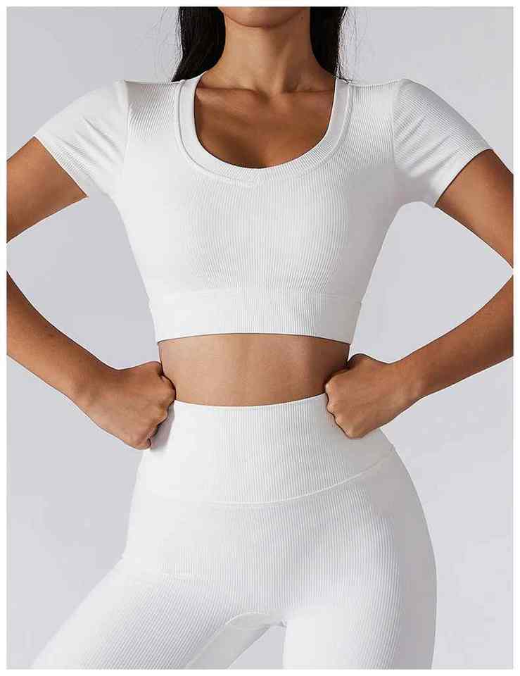 ชุดโยคะผู้หญิงแบบขายส่ง 2 ชิ้น ชุดจั๊มสูทออกกำลังกาย กันน้ำ ระบายอากาศ น้ำหนักเบา