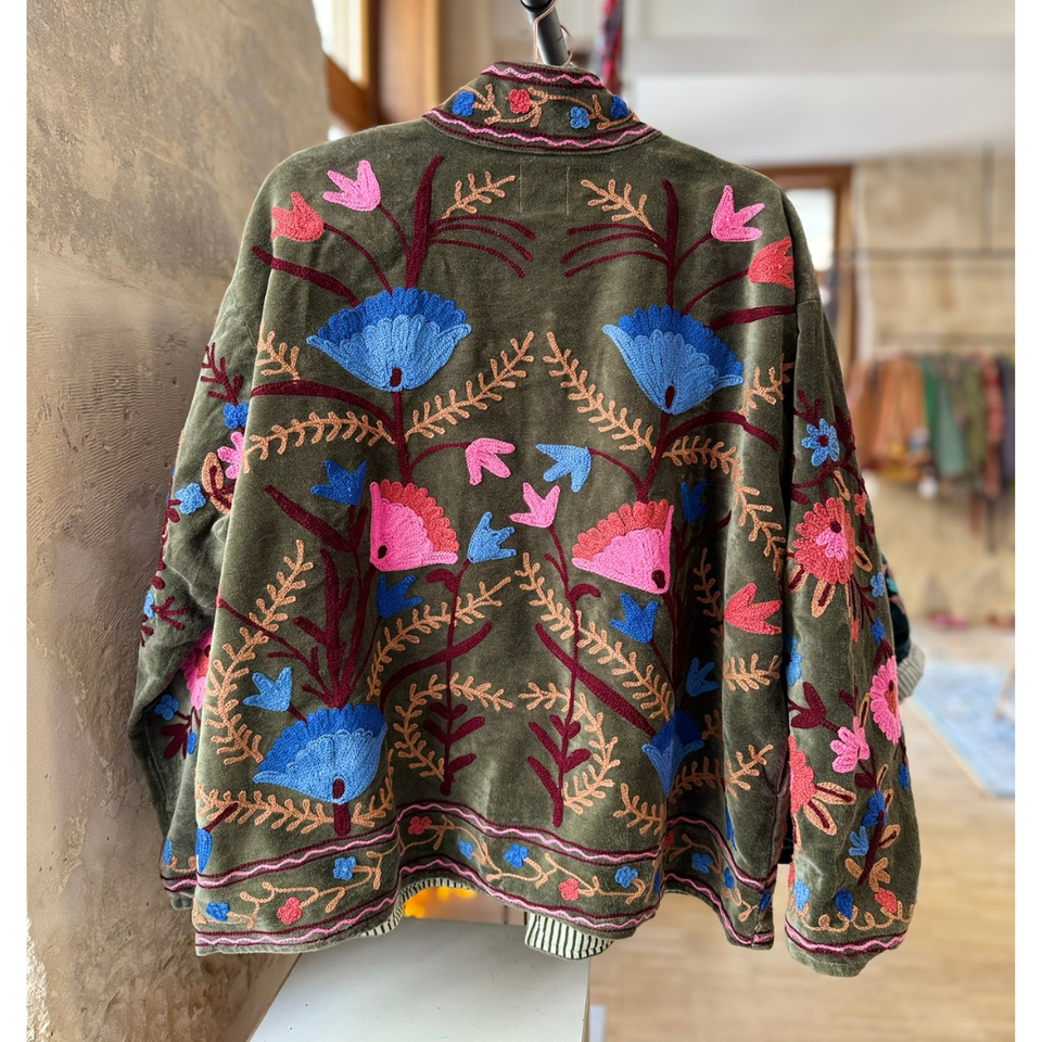 เสื้อแจ็คเก็ตผ้าแคนวาสปักลายดอกไม้สำหรับผู้หญิงและเด็กผู้หญิง ขายส่ง สำหรับฤดูใบไม้ร่วงและฤดูหนาว ผ้าฝ้าย 100% ซับในผ้าฝ้ายเป็นมิตรกับสิ่งแวดล้อม คอตั้ง
