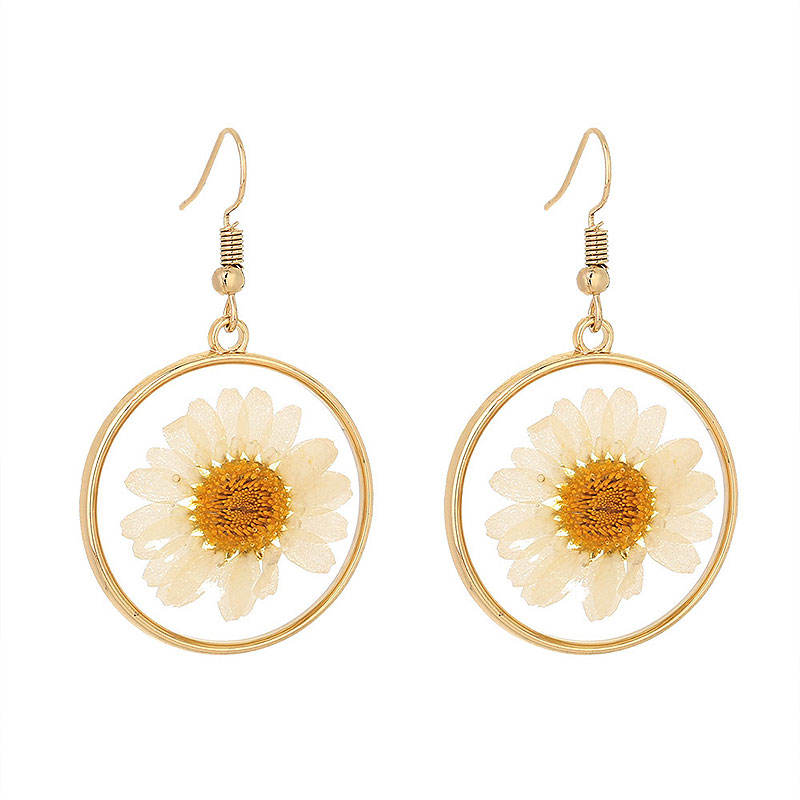เครื่องประดับผู้หญิงต่างหูดอกไม้อัดแข็งแบบคลาสสิกชุบทองทองเหลืองและสังกะสีอัลลอย